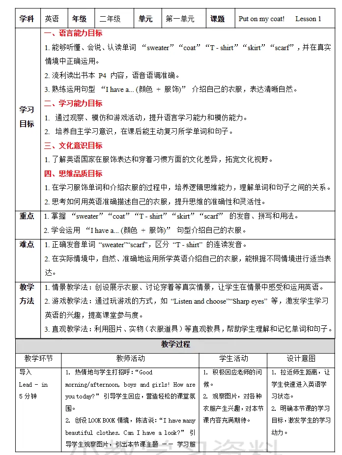 【英语教案课件】新教材人教PEP版小学英语二年级下册全册配套教案+课件+音频+动画视频,限时免费领取