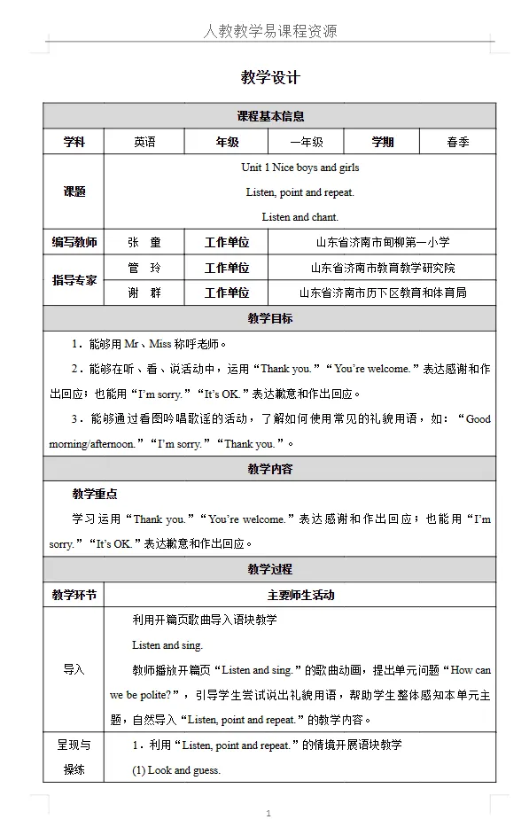 【英语教案课件】新教材人教PEP版小学英语一年级下册全册教案+课件+音频+动画视频,限时免费领取