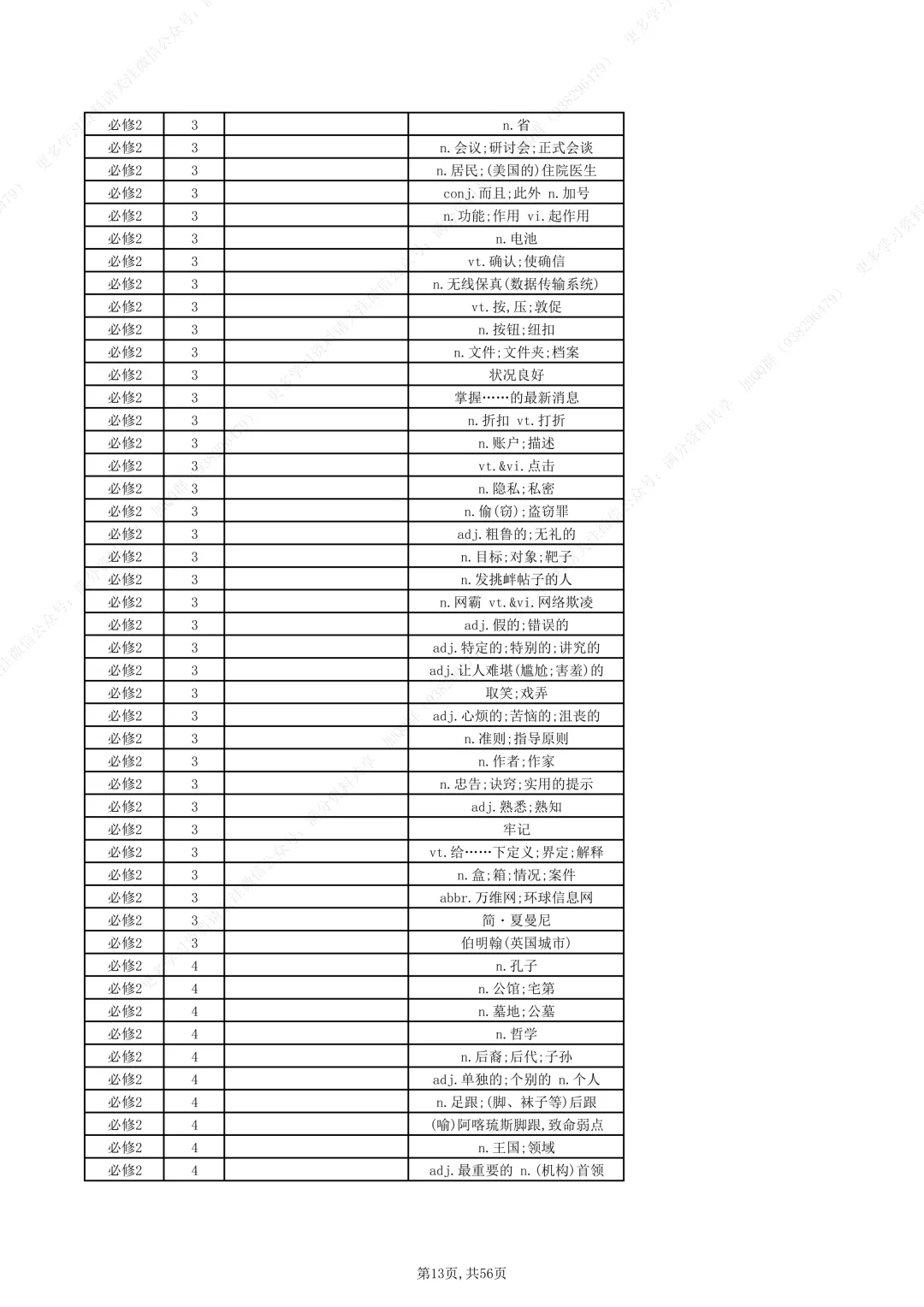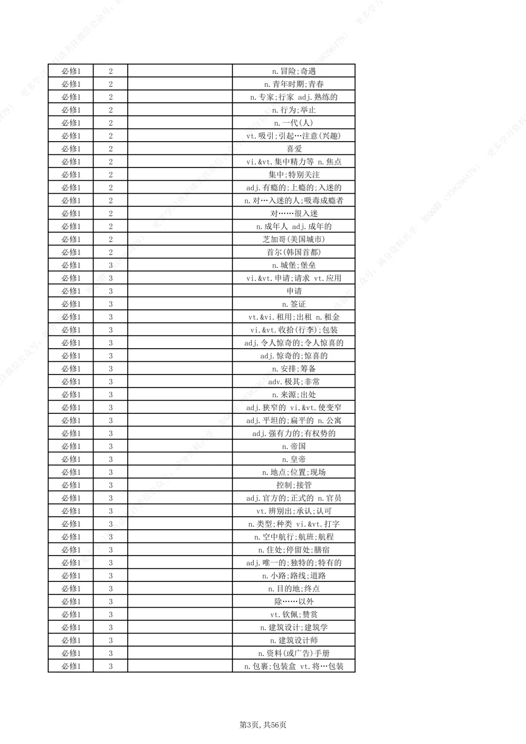 北师大版高中英语必修一至必修三单词汇总(pdf分享)