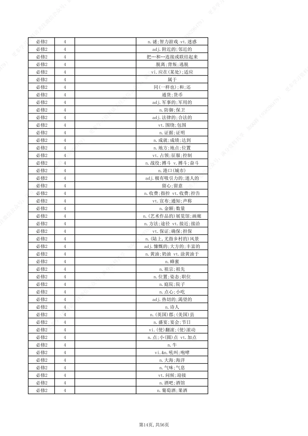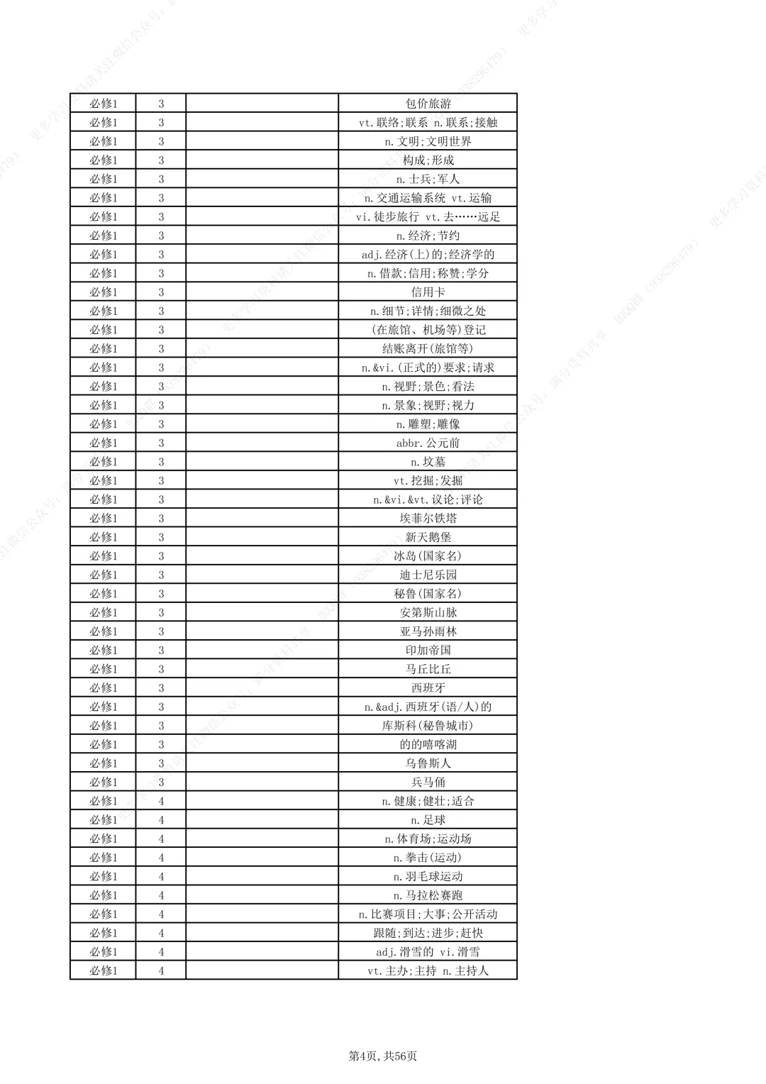新人教版高中英语教材必修一至选修四单词汇总(pdf分享)