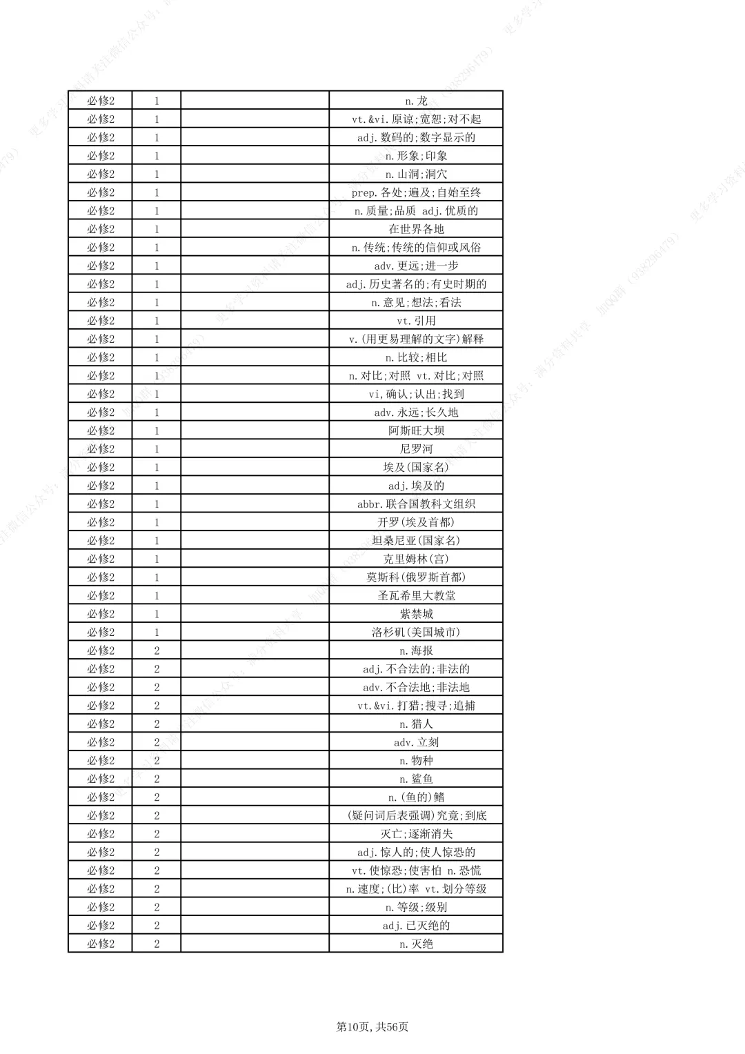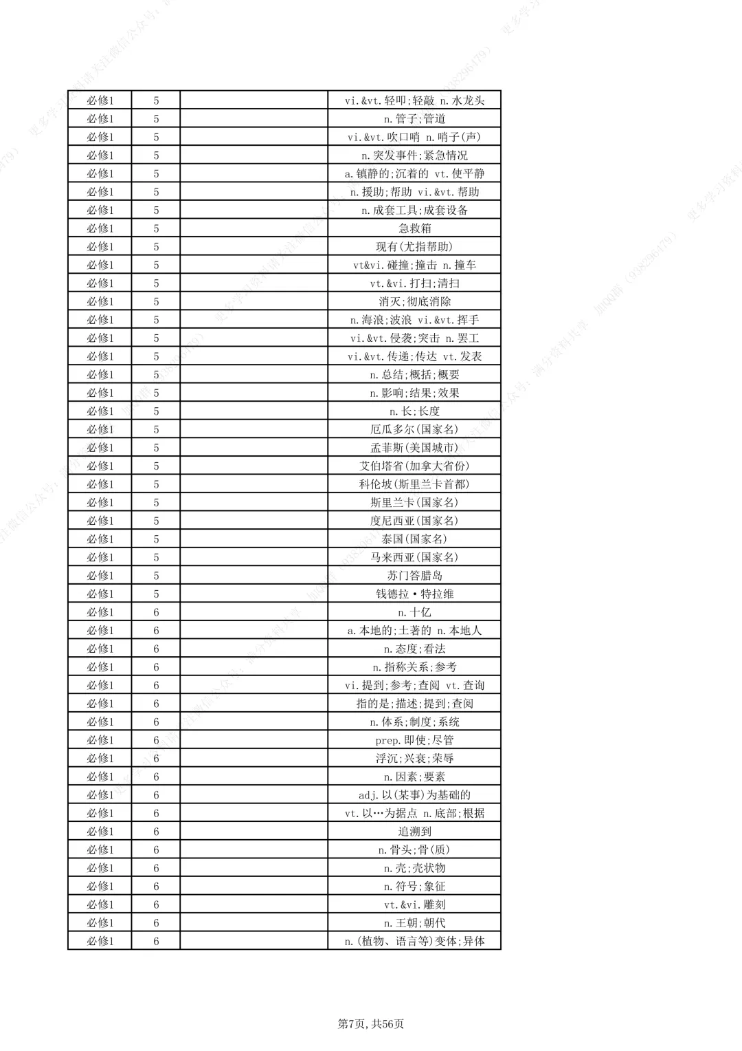 牛津译林版高中英语全11册单词(默写版)(pdf分享)