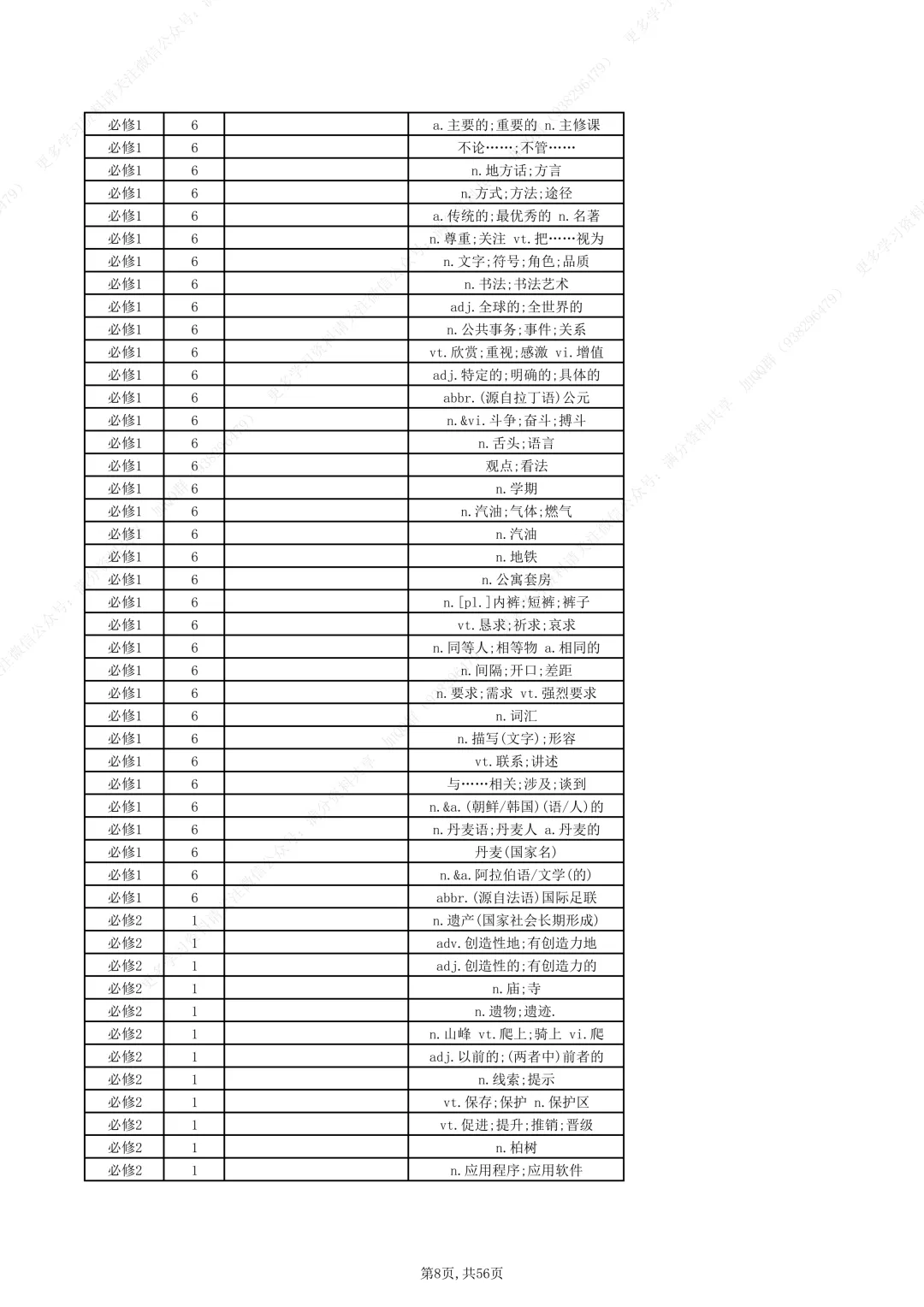 高中英语必修1-选修8重点单词短语(pdf分享)