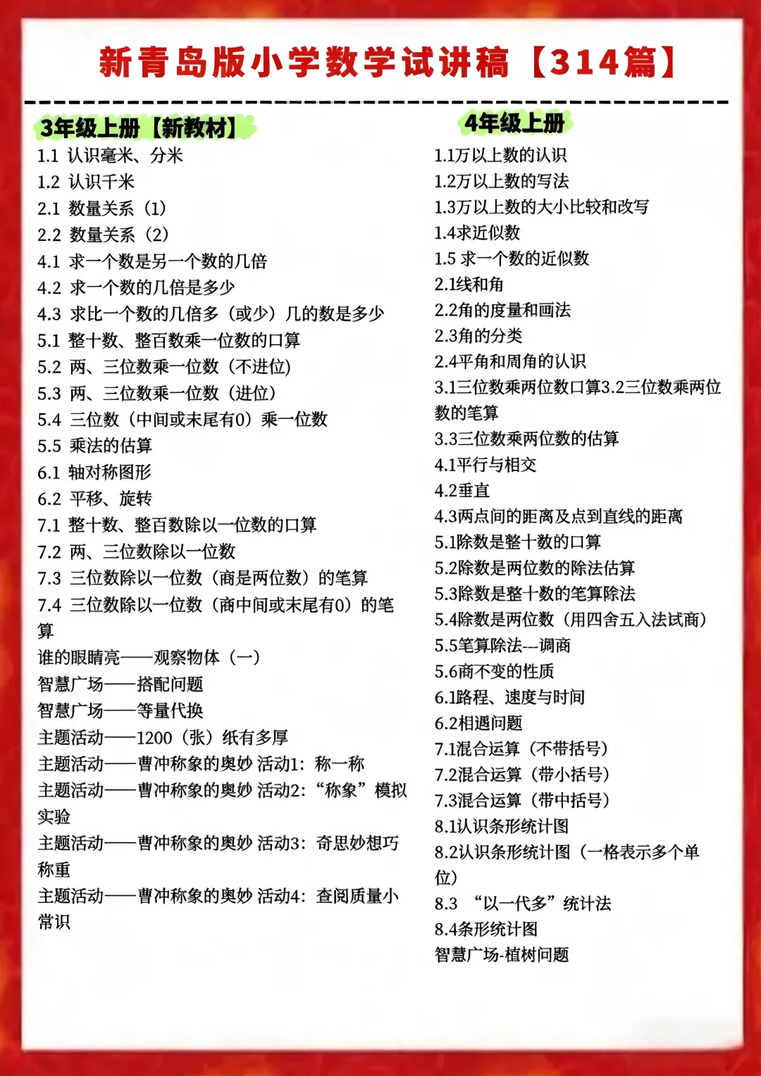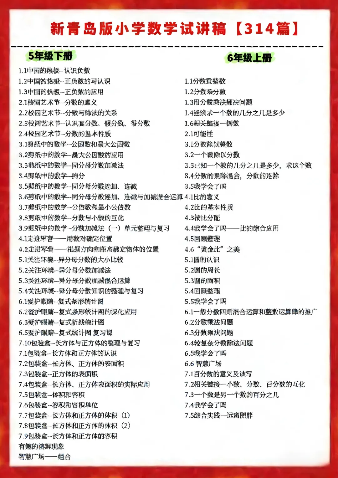 2026新教材青岛版小学数学试讲逐字稿【314篇】【独家原创】