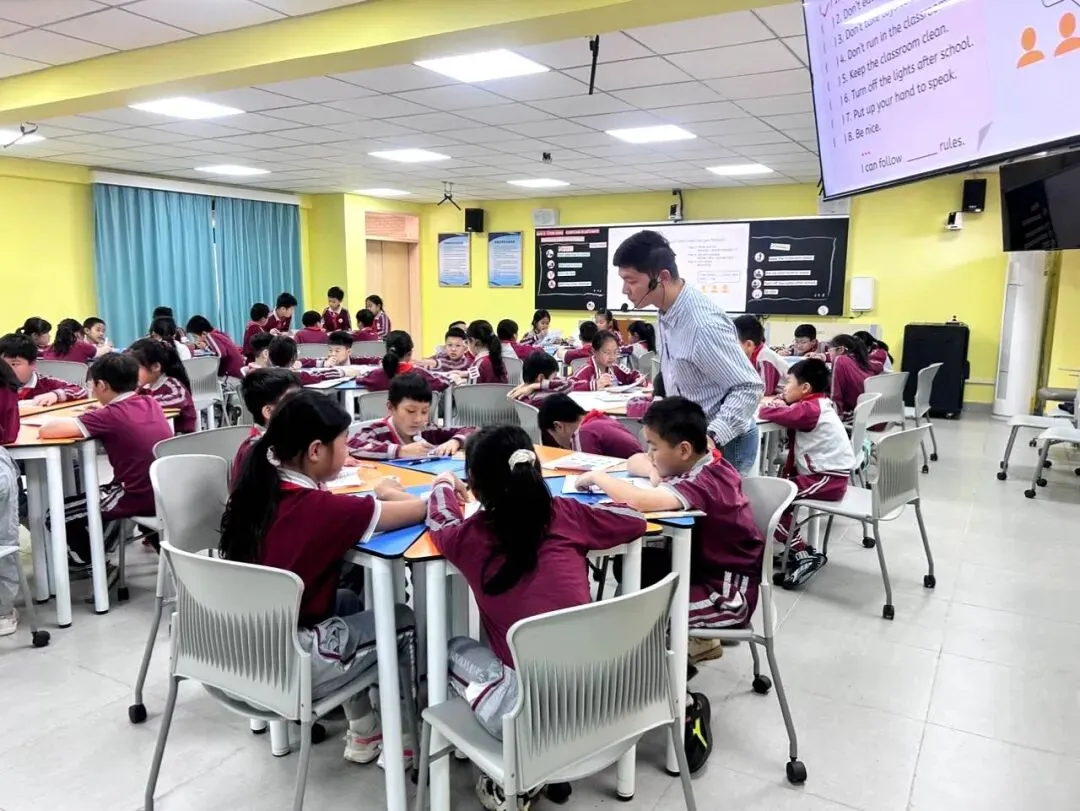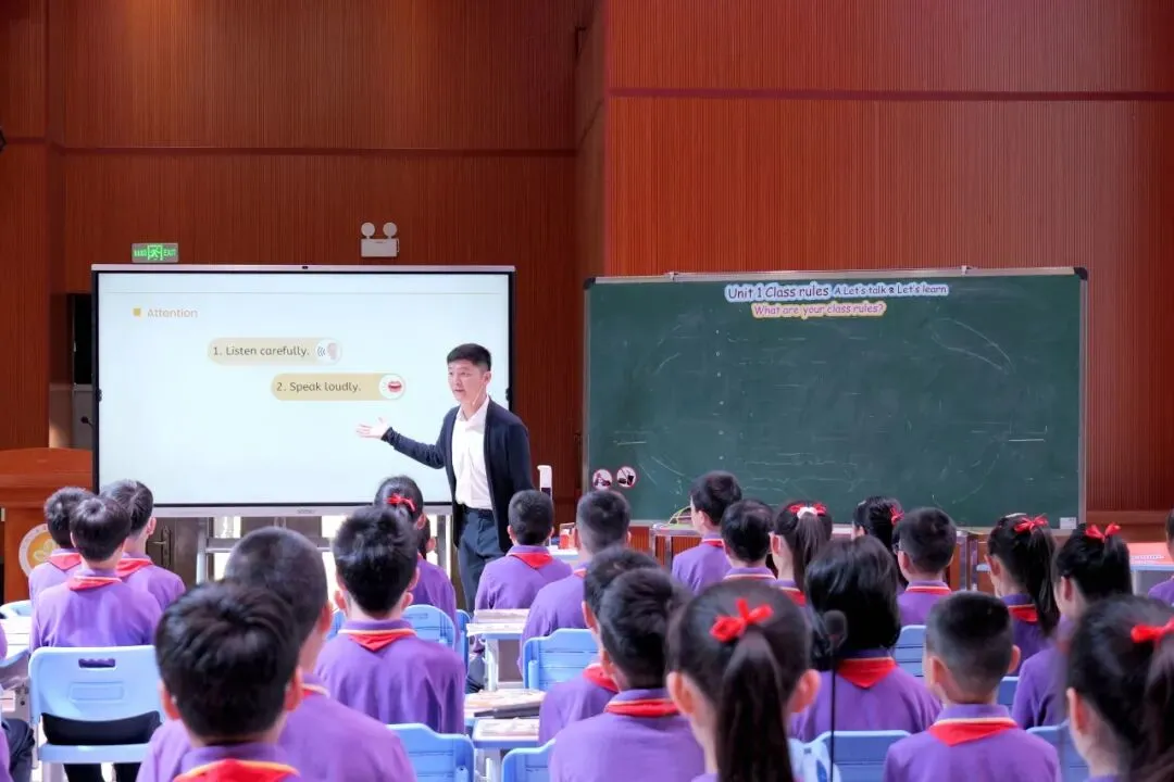 活动中,刘衍鑫老师紧扣新课标理念,以真实情境导入课堂,聚焦“班级规则”这一核心主题,引导学生围绕“班级规则”展开互动探究,并在语言学习过程中体悟班级规则的意义。课堂设计层次清晰,活动丰富有趣,充分激发了学生的学习兴趣与表达欲望。刘老师语言亲切、引导得当,展现了扎实的教学功底和对新教材的深刻理解,赢得了现场专家和听课教师的高度评价,充分展现了我校英语教师的专业素养与教学风采。