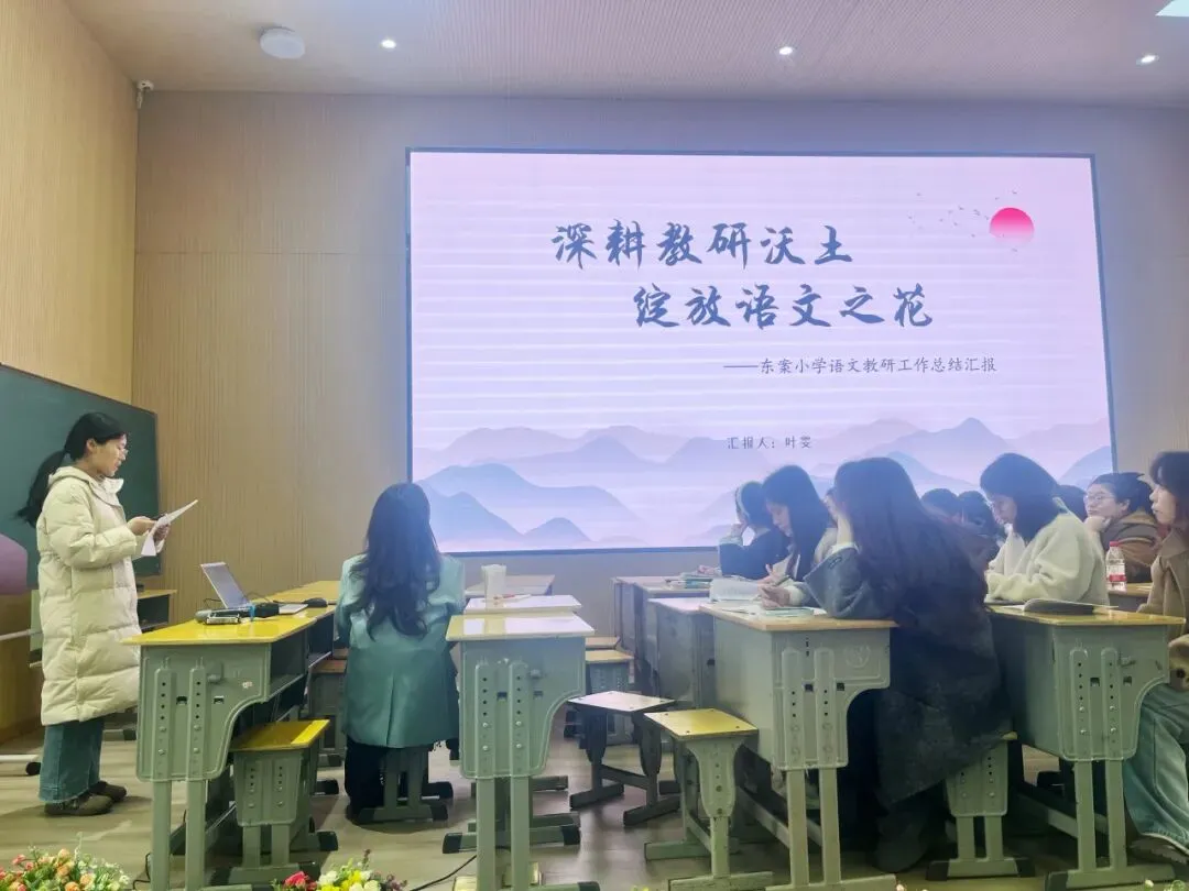 姜群秀老师从五大维度,对2025学年第一学期青石镇中心小学语文教研组工作进行了全面汇报:一是开篇谋局,明方向聚人心,学期初明确教研计划,表彰优秀教师,筑牢教研根基;二是骨干领航,展风采促成长,通过骨干、级组展示课,以课例引领打磨高效课堂;三是跨科研修,拓视野共成长,承办跨学科研修活动,探索整本书阅读新路径;四是趣味实践,乐学习强素养,策划全年级趣味语文活动,联动科普点燃学生阅读热情;五是专业赋能,勤研修提能力,构建多元培训体系,全方位提升教师专业能力。汇报最后,姜群秀老师也对未来教研工作作出展望,期待全体语文教师继续深耕教研、结伴同行,在学习中成长、在坚守中拔节,让语文之美浸润每一位学生的成长之路。