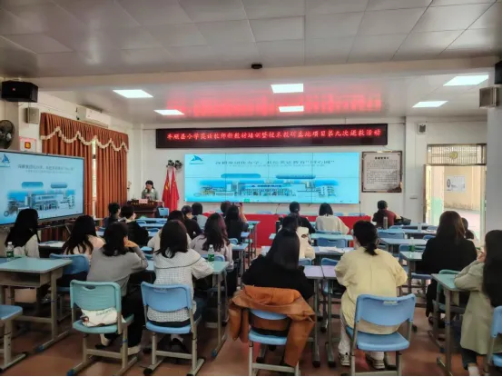 为深化小学英语课堂教学改革,提升教师专业素养与新教材应用能力,2026年3月23日,丰顺县小学英语教师新教材培训暨校本教研基地项目第九次送教活动在潘田中心小学顺利举行。本次活动由县发展中心教学科学研究部副部长、英语教研员陈燕芬主持,潘田中心小学支部书记、校长刘长新等行政,以及来自全县第三、四教研区域的英语教研组长、骨干教师等齐聚一堂,共研教学、共促成长。
