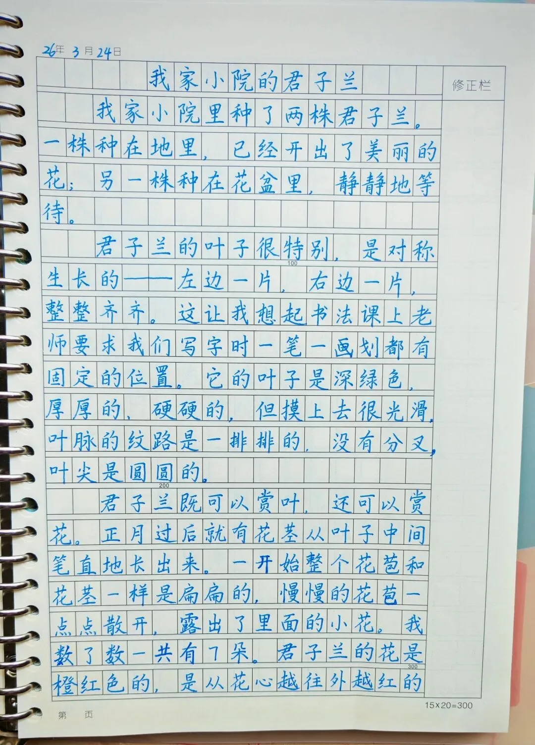 君子兰的叶子很特别,是对称生长的——左边一片,右边一片,整整齐齐。这让我想起书法课上老师要求我们写字时,一笔一画都有固定的位置,要讲规则。它的叶子厚厚的、硬硬的,但摸上去很光滑,叶脉纹路是一排排的没有分叉,叶尖是圆圆的。