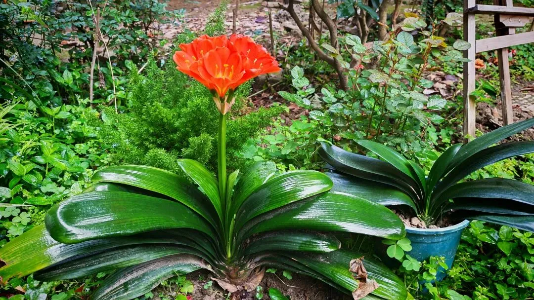 我家小院里种了两株君子兰。一株种在地里,已经开出了美丽的花;另一株种在花盆里,还在静静地等待。
