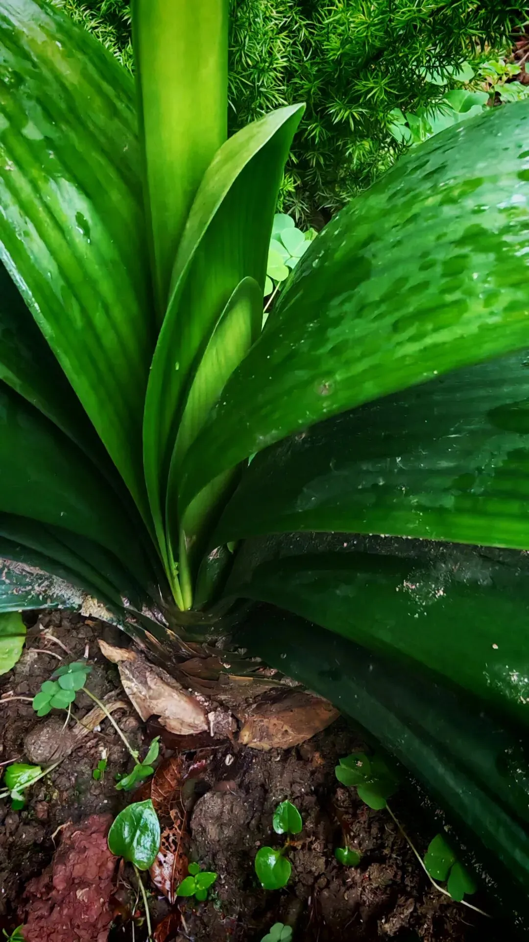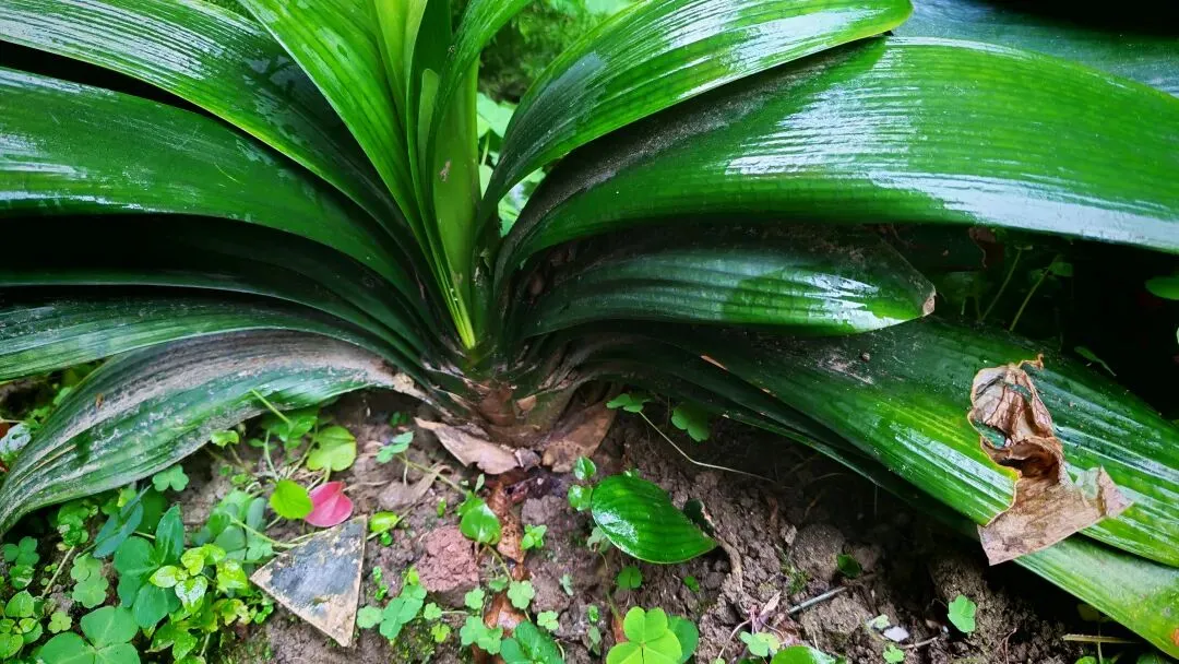 今天,我在开花的君子兰旁边发现了一片新叶子。应该是从根上长出的新苗,相信明年的这个时候它就会从一片变成三四片了。