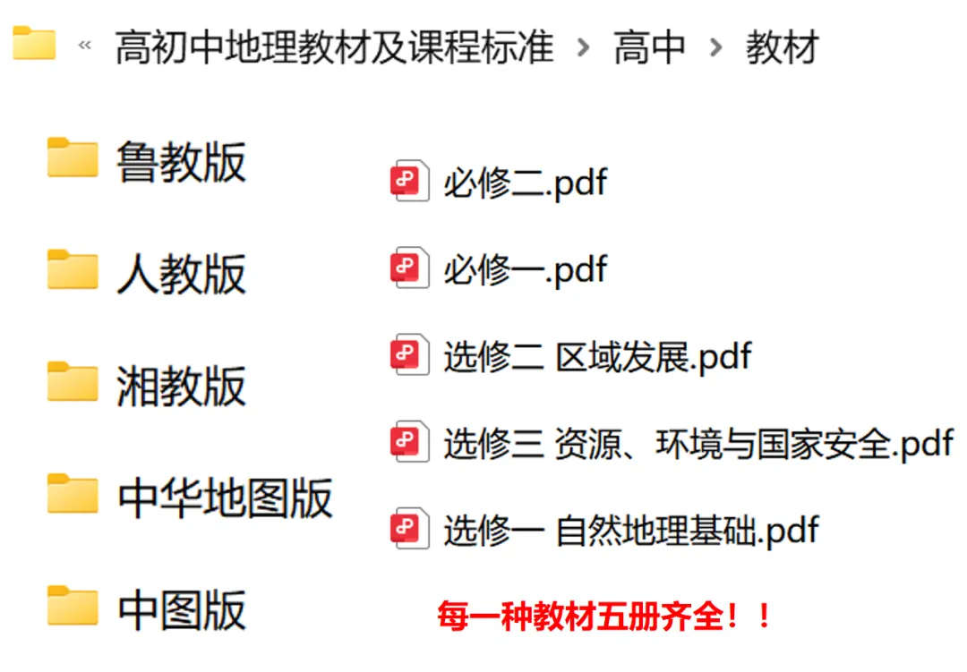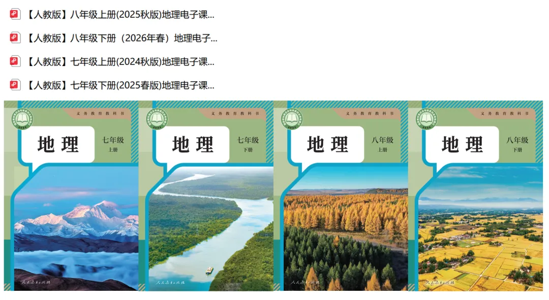 大家好呀,今天和大家分享以下资源,都是免费领取哦,领取方式请下滑!高中教材鲁教版、人教版、湘教版、中华地图版、中图版电子版,两本必修三本选修内容齐全,官方渠道下载,内容高清!!!初中教材有新旧人教版本高清版教材!!七年级至八年级上下四册齐全!涵盖中国高考评价体系、普通高中地理课程标准2017年版、2022年修行版、2025年日常修订版以及义务教育课程标准!- 填写问卷,点击提交后自动出现页面,页面上会有对应资源的网盘链接,复制打开软件即可获取,有效期为7天~请尽快保存下载!