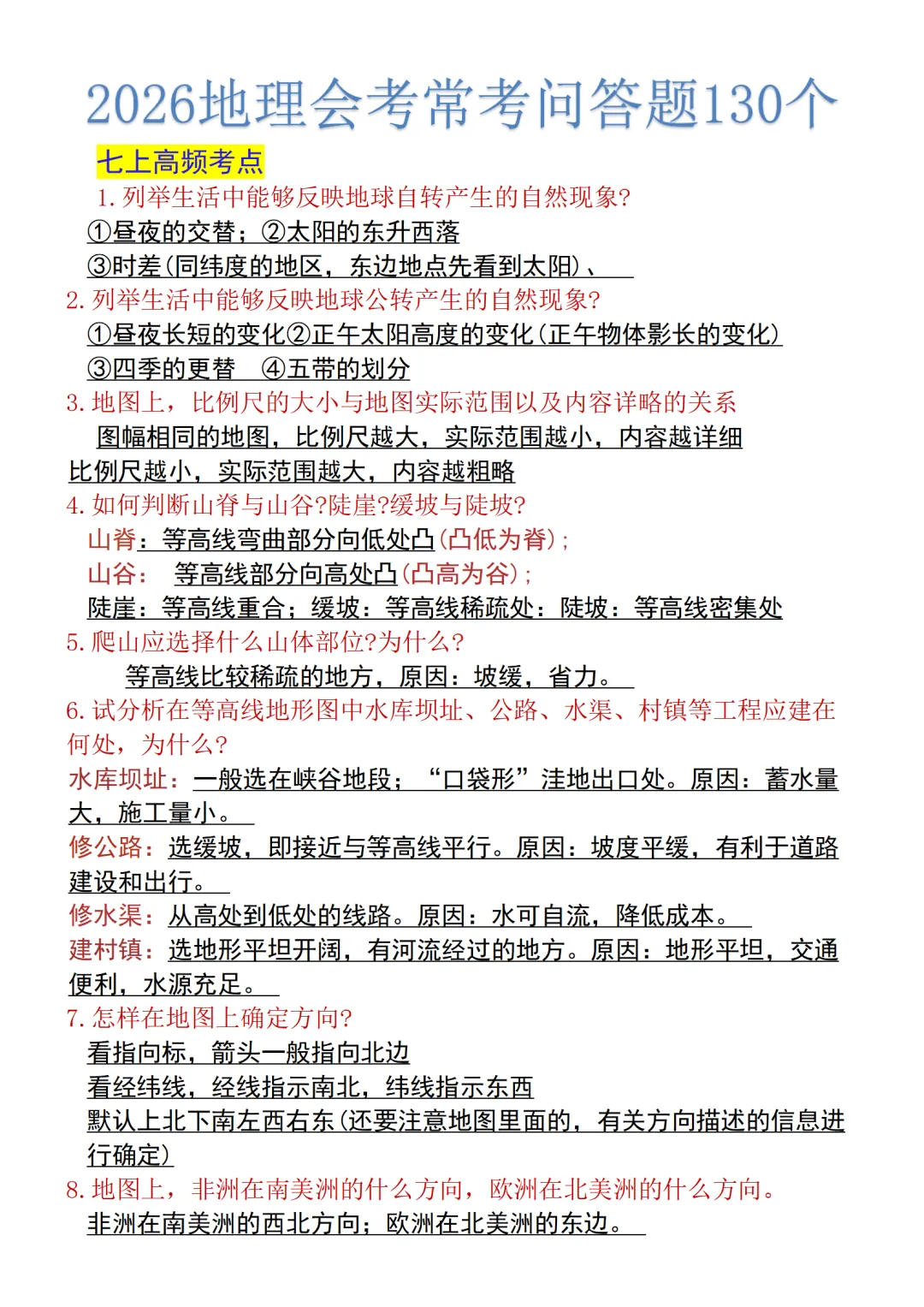 >【新版本】新教材初中地理会考重点知识点汇总,电子版可打印!