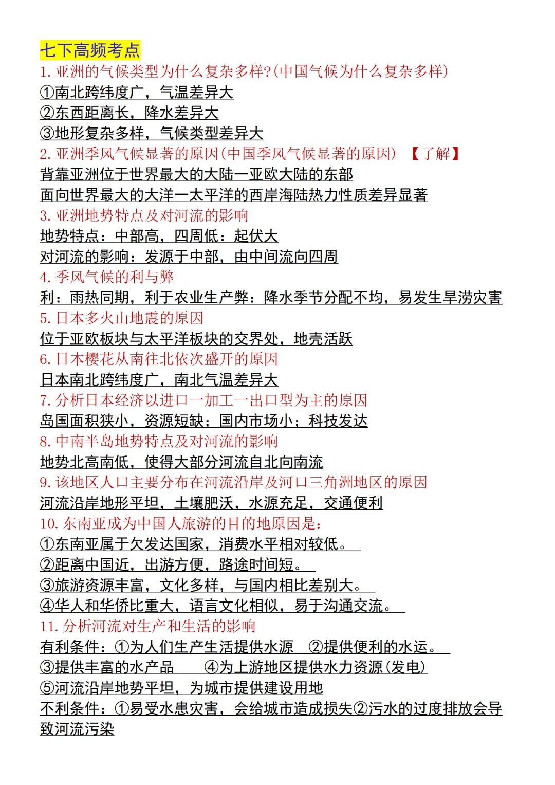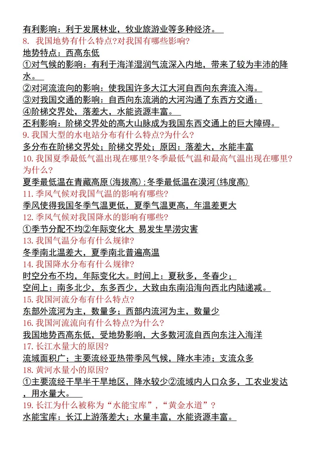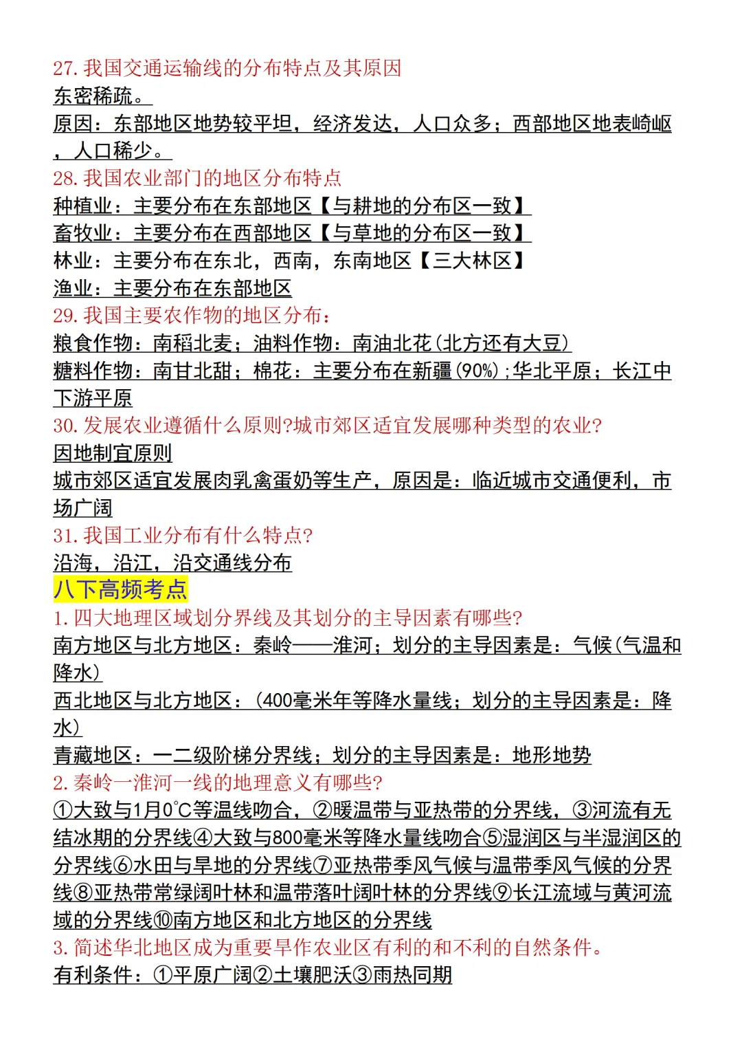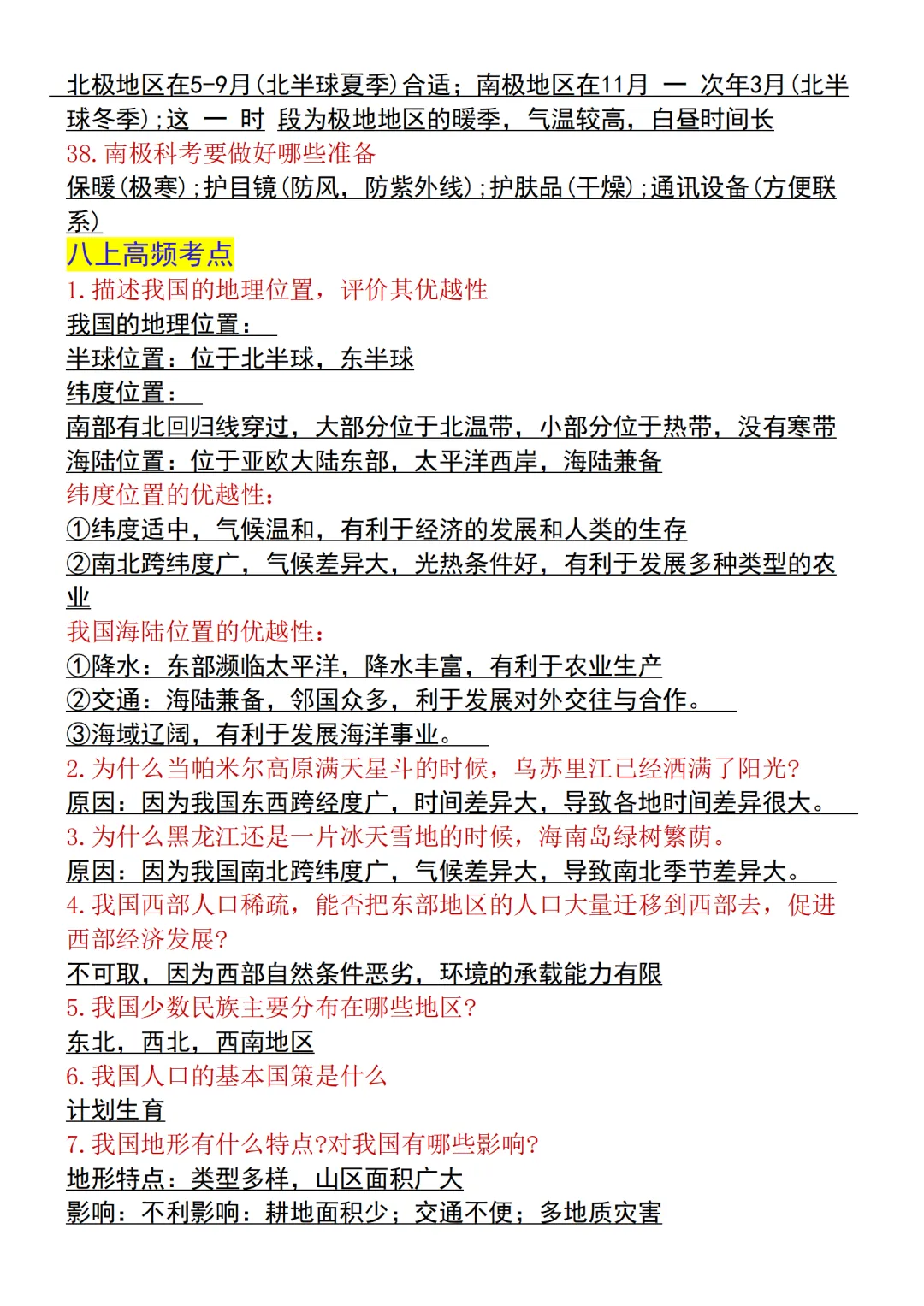 【新版本】新教材初中地理会考重点知识点汇总,电子版可打印!