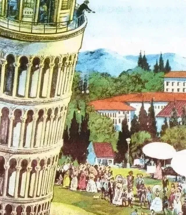 这幅画是“伽利略做实验”那节,课本上光是插图就把孩子心里的问号勾出来了,那个斜斜的高塔,淡黄建筑配着远山绿影,塔上还有一个小人往下扔铁球鸡蛋,当年谁没跟着试过,都拿橡皮糖果或者小石块偷偷模拟,哥哥在屋檐上试了好几次还叫我帮忙数,爸妈只摇头说:“这孩子又学课本弄家伙了”,书上的人群画得密密麻麻,看着就想往里扎,搭伙凑个热闹,说实话那种科学实验的劲头,多半都是被插图点燃的,现在小孩碰手机多了,看惯动画片,课本里这种画倒稀罕了,印象也就不深。