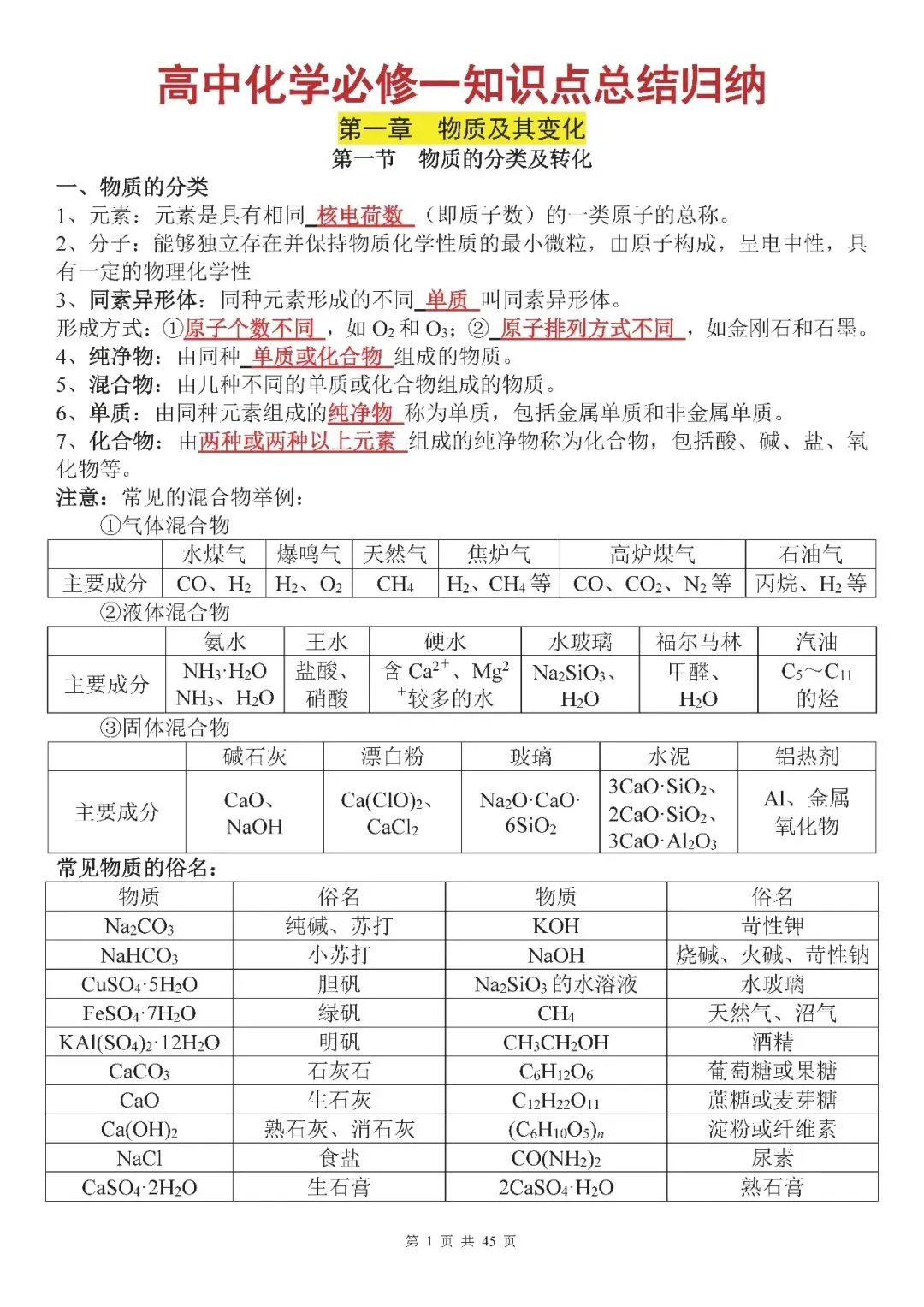 【高中化学知识点大全】高中语文必修一课本同步知识点大全(可免费下载打印)