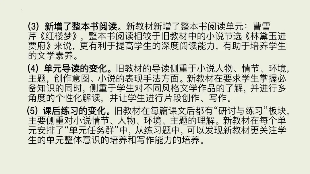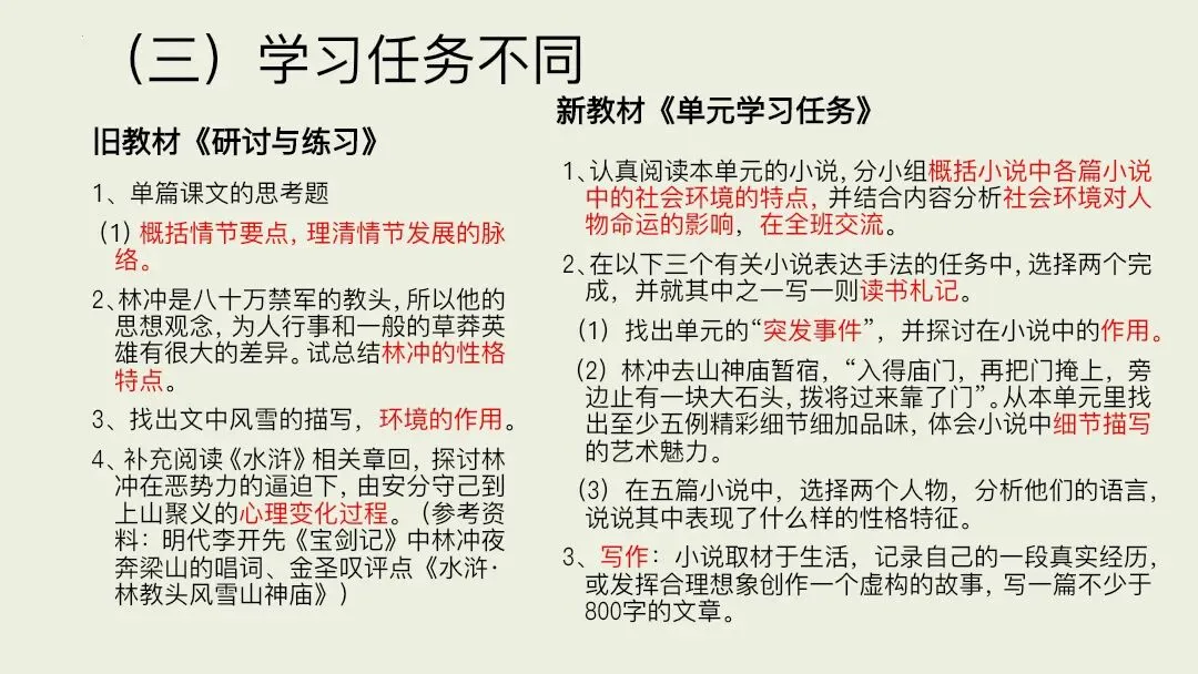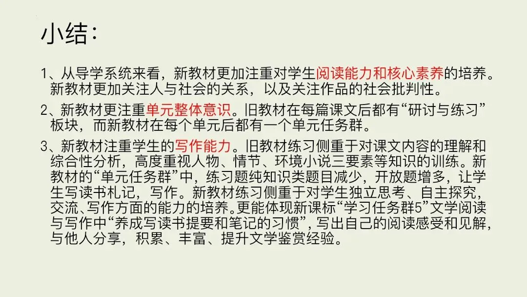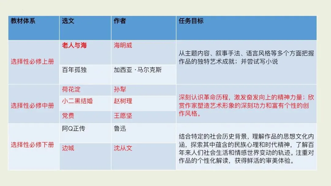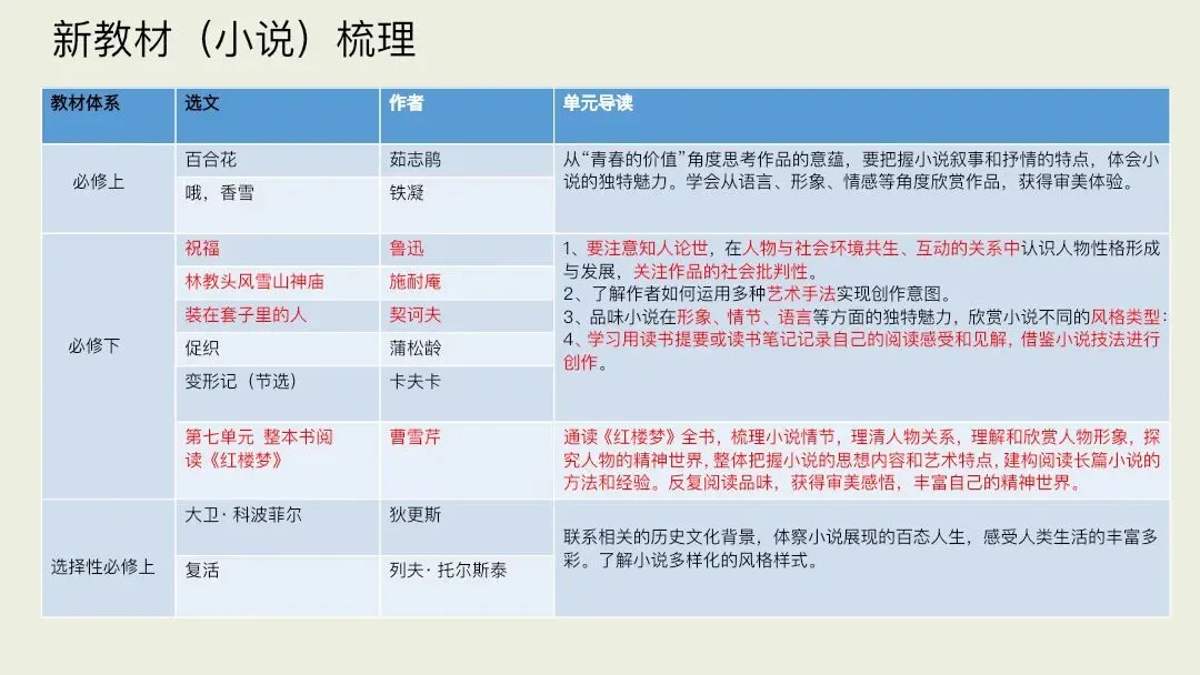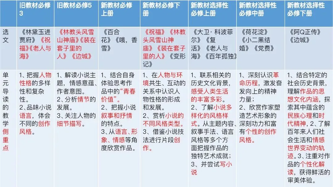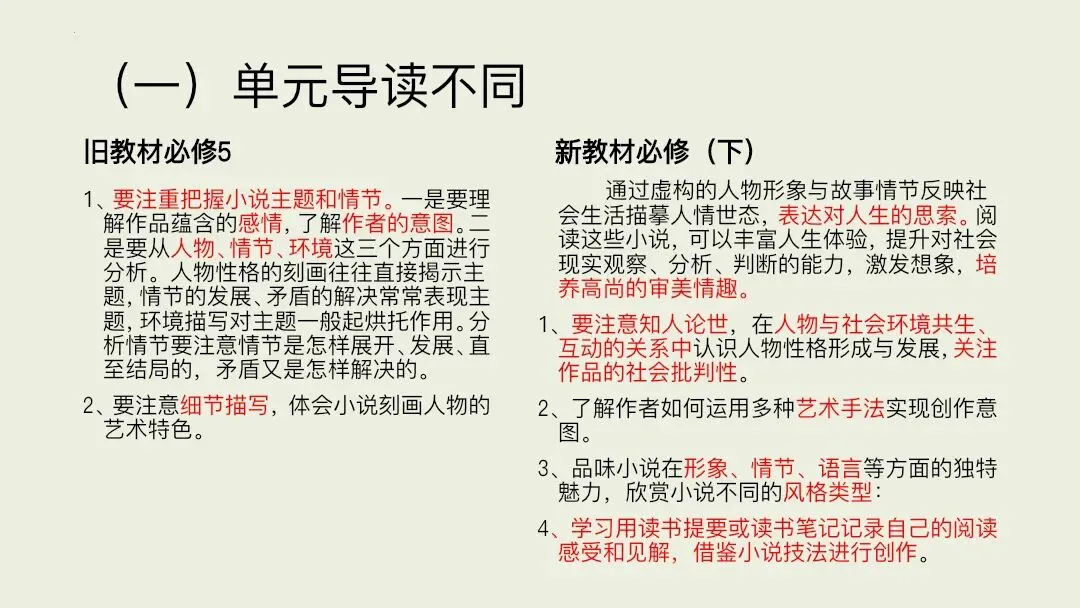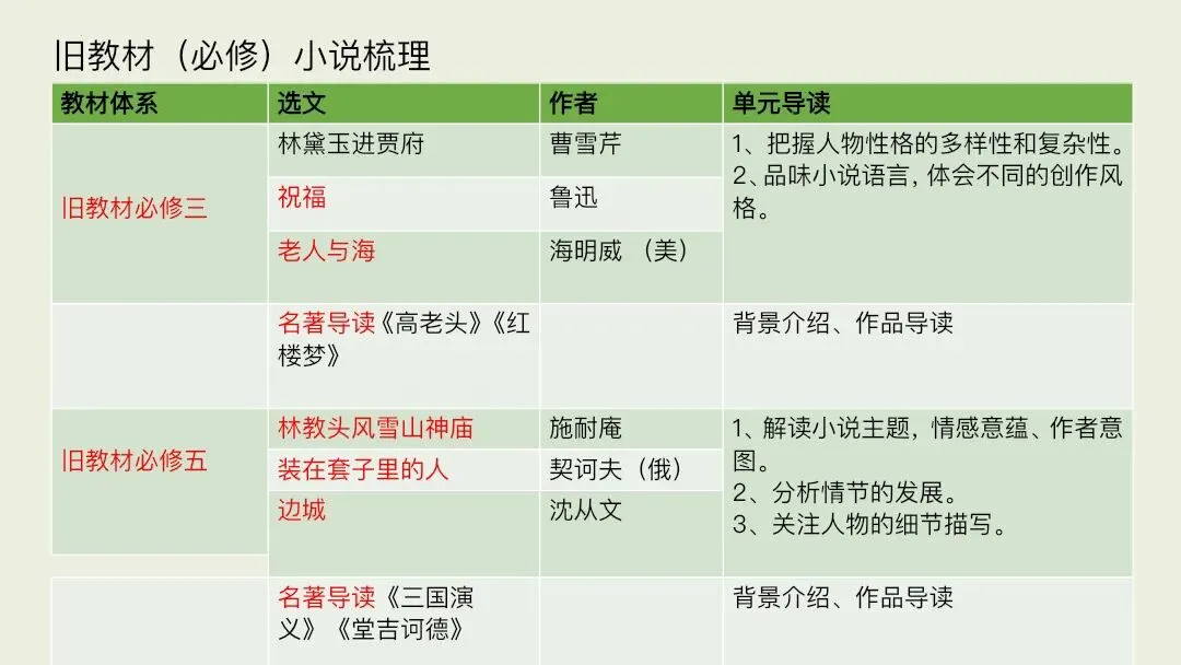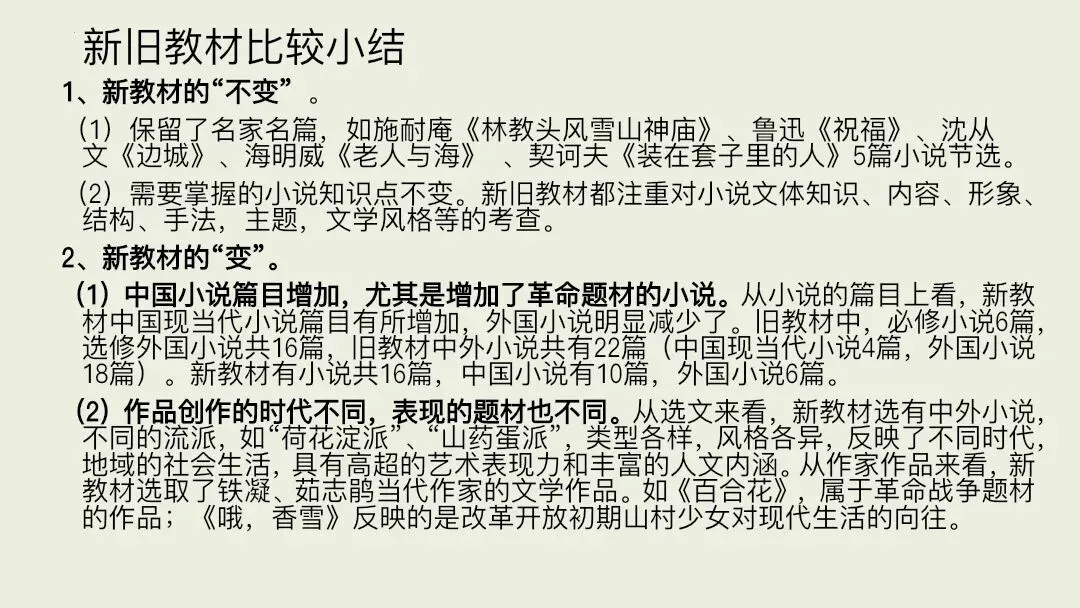>2026届高考语文复习:高中语文新旧教材(小说)对比 课件