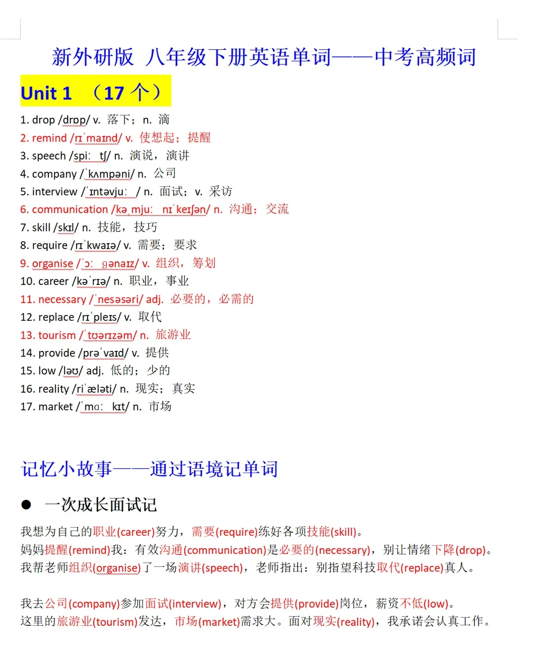 >外研版初中英语八年级下册电子课本同步教材单词表附知识点归纳