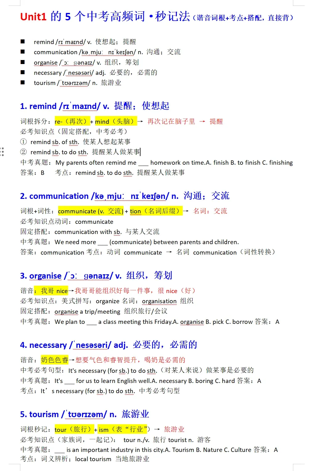完整版知识点+单词+总结+课堂笔记
