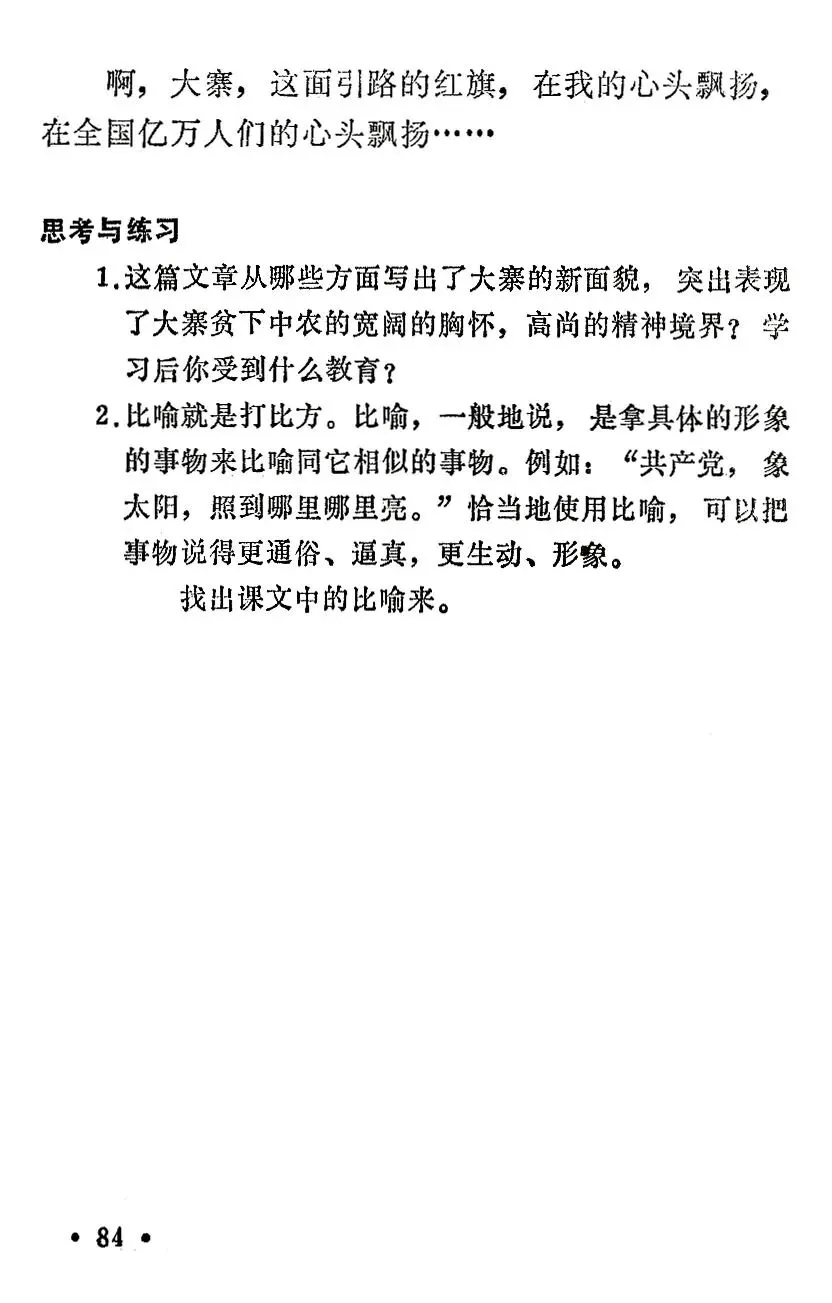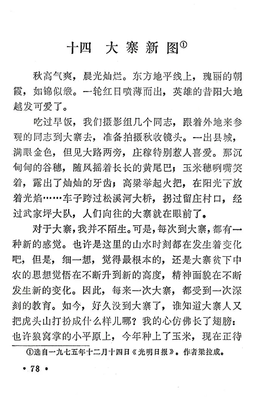 上两期介绍了第一册中有关大寨的课文,本期介绍第二册的课文,第十四课 大寨新图。
