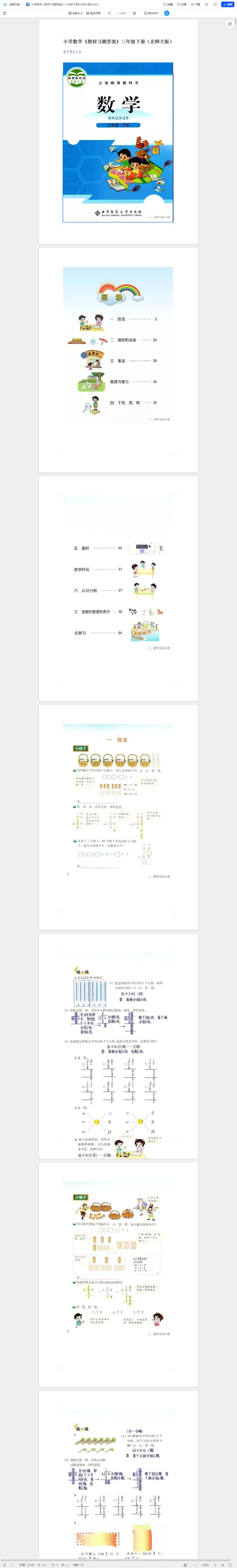 >小学教材习题答案三年级下册3年级下册北师大版数学课本参考答案北师大版