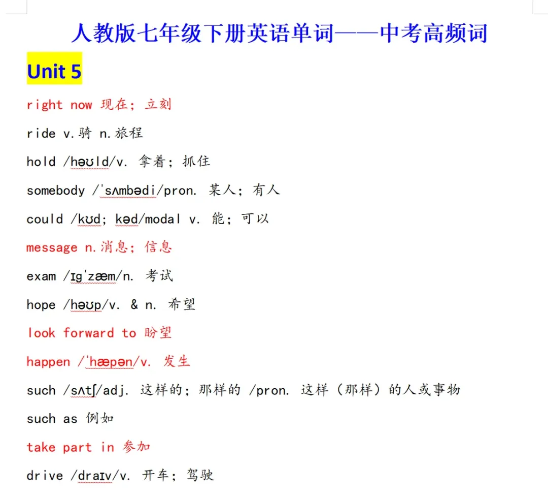 >人教版初中英语七年级下册英语2026新教材单词表+单词解析笔记(免费下载打印版)