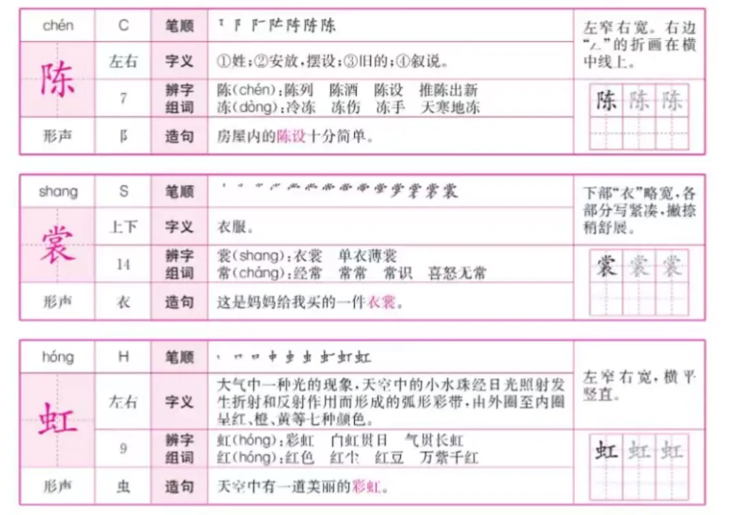 ③ 组词,组词时要尽可能多组词,家长可以和孩子比赛看谁组的词更多,低年级的小朋友会特别喜欢这种和爸爸妈妈比试的模式。
