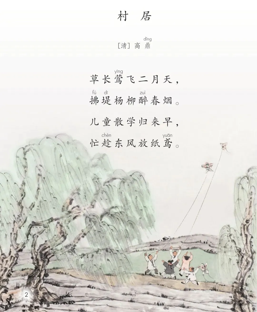 春风拂面,草长莺飞,孩童逐风放纸鸢。