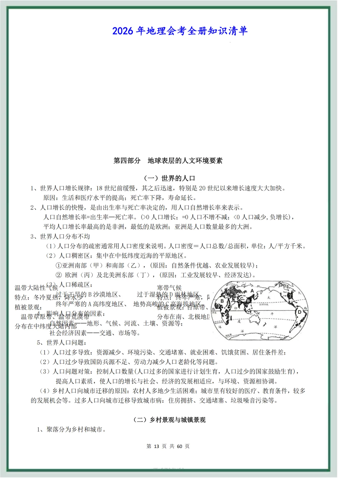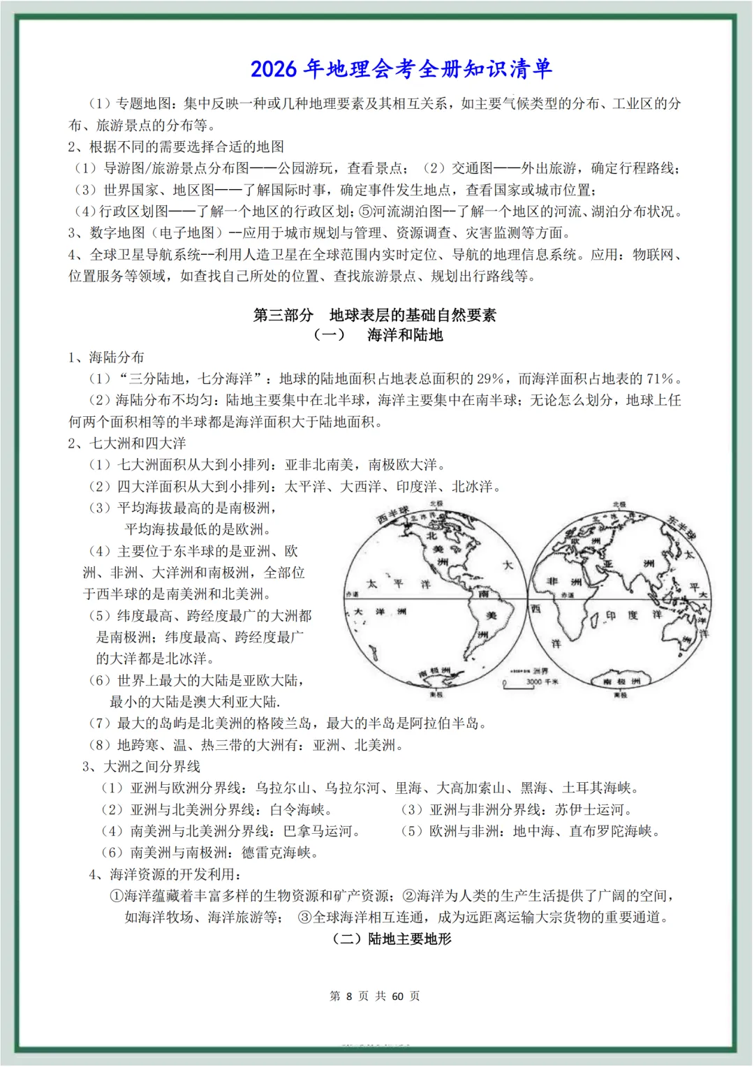 >【新版本】新教材 2026 初中地理会考必考知识点汇总,电子版可打印!