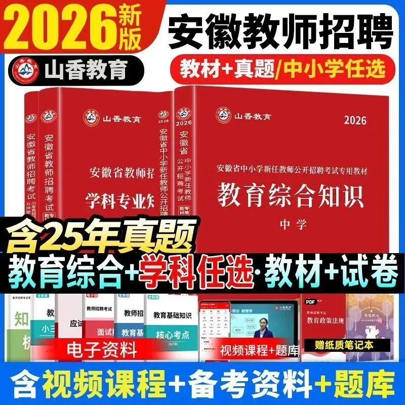 >山香2026安徽省教师招聘编制考试用书中小学教材历年真题试卷网课