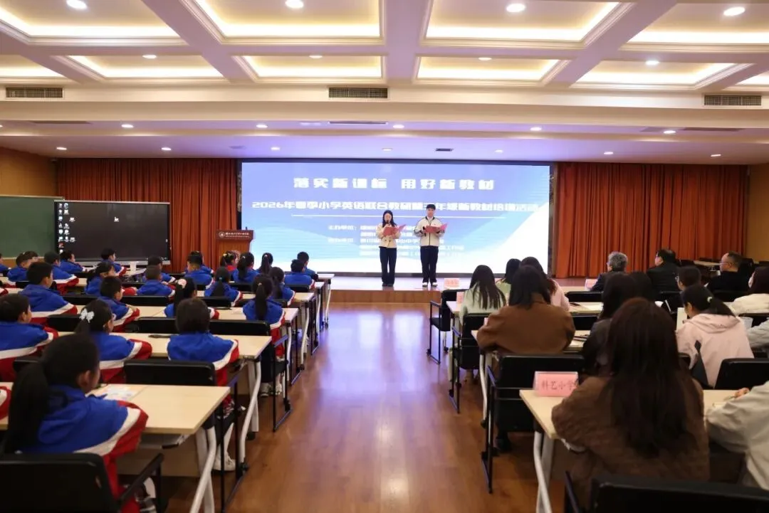 春风送暖启新程,教研赋能促成长。为深入贯彻《义务教育英语课程标准(2022年版2025年日常修订)》核心理念,精准把握人教PEP三年级英语新教材的编写思路、内容架构与教学实施策略,切实提升小学英语课堂教学质量,培育学生英语学科核心素养,3月25日,由绵阳市何稚萍名师工作室主办,绵阳南山中学双语学校、绵阳市何稚萍名师工作室陈永霞工作站、李姝君工作站承办,绵阳经开区三江实验学校联合承办的“落实新课标,用好新教材——2026年春季小学英语联合教研暨三年级新教材培训活动”在南山双语第三学术厅成功举办。
