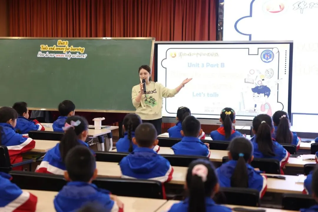 南山双语卓宇老师以 “感官”为教学主题,以生活化情境为载体,精心设计真实、可感的英语对话场景,紧扣 “用英语做事情” 的新课标语用目标,引导学生在玩猜测游戏的过程中内化目标语言,感知“五感”在生活中的作用,鼓励学生乐于探索发现。整堂课注重互动表达与思维启发,问题链设计丝丝入扣,教学环节推进层层递进,充分展现了我校教师对新教材编写理念的深入理解与扎实的课堂教学功底,让新课标下的英语课堂充满活力与温度。