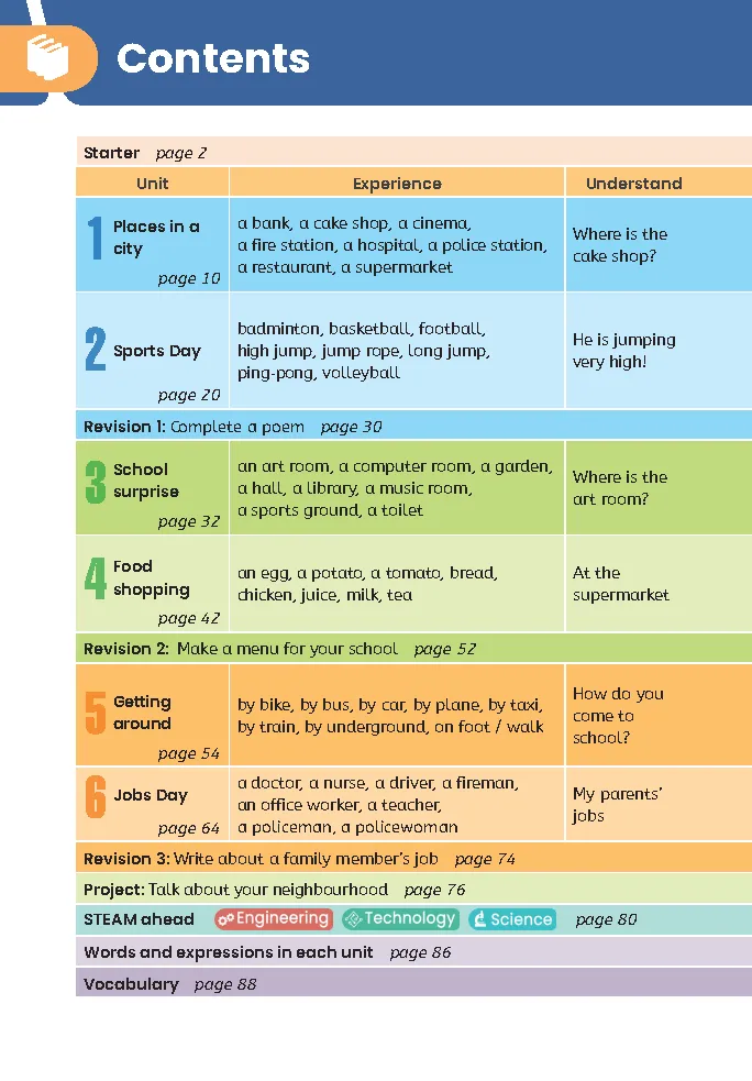 ,然后发送 电子课本 四年级英语进阶关键册!2026秋大同版四年级英语上册新教材,是三年级起点的进阶用书,由大同出版传媒有限公司联合人民教育出版社编修,依据新课标编写,遵循“夯实基础、强化运用、贴合生活”的核心原则,贴合四年级学生的认知特点和已有英语基础,注重语篇运用与听说读写能力同步提升,共设置Starter预备单元、6个主题单元和3个复习单元,围绕城市场所、运动赛事、校园惊喜、食品购物、出行方式、职业梦想六大实用主题展开,衔接三年级英语启蒙知识,兼顾词汇拓展、句型强化和语法渗透,孩子预习复习直接对照,不用费心整理,轻松实现英语能力进阶。全单元核心知识点精准拆解,适配课堂考点,完全贴合教材真实编排:Starter预备单元重点复习三年级所学的26个英文字母、基础词汇和简单句型,巩固问候、自我介绍等基础表达,同时引入本册主题相关基础词汇,搭配字母歌、拍手游戏等趣味形式,区分易混淆字母,为新学期学习做好铺垫,还会渗透简单的课堂指令和数字、颜色相关基础表达,衔接启蒙基础。Unit1围绕“城市场所”展开,学习library、hospital、cinema、restaurant等场所类词汇,掌握Where is the...? It's on...Street.的位置询问与描述句型,以及How can I get to the...?的出行问路句型,能准确说明城市场所的位置并指引路线,同时学习相关字母组合发音,规避多音节单词发音与拼写易错点。Unit2聚焦“运动日”,学习long jump、high jump、running race等运动项目词汇,掌握He/She can...、He/She is good at...的能力描述句型,以及Whowon the...?的赛事询问句型,能谈论运动能力和比赛结果,巩固一般现在时基础用法。Unit3围绕“校园惊喜”,学习gym、playground、party等校园设施与活动词汇,掌握What a surprise!、We are going to...的惊喜表达与计划句型,能谈论校园活动计划,表达自己的惊喜感受,渗透一般将来时基础用法。Unit4聚焦“食品购物”,学习vegetables、fruits、meat等食品类词汇,掌握How much is the...?的价格询问句型,以及I want to buy some...、Here you are.的购物对话句型,能完成简单的购物交流,区分some与any的用法。Unit5围绕“出行方式”,学习bus、bike、car、subway等交通工具词汇,掌握How do you go to...? I go by...的出行方式谈论句型,能介绍自己的出行方式并比较不同交通工具的特点。Unit6围绕“职业日”,学习teacher、doctor、driver等职业类词汇,掌握What does he/she do? He/She is a/an...的职业询问句型,以及What do you want to be? I want to be a/an...的理想表达句型,能询问他人职业并说说自己的职业梦想。3个复习单元分别对应前期所学内容,通过综合练习、情景任务、角色扮演等形式,帮助孩子巩固词汇、句型和发音知识,规避句型混淆、单词拼写、发音不准等易错点,全面提升语言综合运用能力。