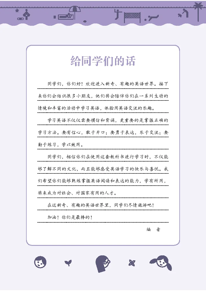 ,然后发送 电子课本 四年级英语进阶关键期!2026秋接力社版四年级英语上册新教材,紧扣2022版义务教育英语课程标准,以“生活化、趣味性、循序渐进”为核心,编排10个单元(含8个主题单元+2个复习单元),贴合四年级学生从英语启蒙向能力进阶过渡的认知特点,在巩固基础词汇和简单句型的同时,重点提升听说读写综合应用能力,规避发音混淆、语法误用等常见易错点,通过情景对话、游戏互动、角色扮演等形式激发学习兴趣,孩子预习、复习、同步练习直接对照,不用费心整理,轻松吃透全单元知识点,稳步提升英语能力。全单元核心知识点精准拆解,结合新教材真实编排与教学重点梳理,适配课堂考点与日常练习:8个主题单元围绕身体部位、寻找物品、美好日子、天气状况、家庭亲情、辨别差异、数字认知、自然公园八大实用场景展开,层层递进构建“词汇—句型—对话—应用”的知识体系。词汇方面,按话题分类梳理核心必背词汇,身体部位类有head、eyes、ears、shoulder、knee等,物品类有watch、glasses、key等,天气类有sunny、rainy、windy等,家庭类有cook、clean等,数字类涵盖11-100的英文表达,自然类有mountain、river、tree等,搭配This is my...、I find it、Whats the weather like等高频固定搭配,标注精准音标,方便分类记忆、灵活运用。语法与句型聚焦基础进阶,重点掌握be动词用法、地点介词(in/on/under)、like+doing sth.结构,以及询问物品位置、天气、家庭活动的简单疑问句式,如“Where is...? I find it.”“Whats the weather like? Its...”,规避语序颠倒、名词单复数误用、多音节单词发音错误等问题,同时配套听说读写阶梯式练习,从跟读单词、匹配图片,逐步过渡到模拟短对话、仿写单句,兼顾趣味性与基础技能培养,贴合四年级英语进阶需求。