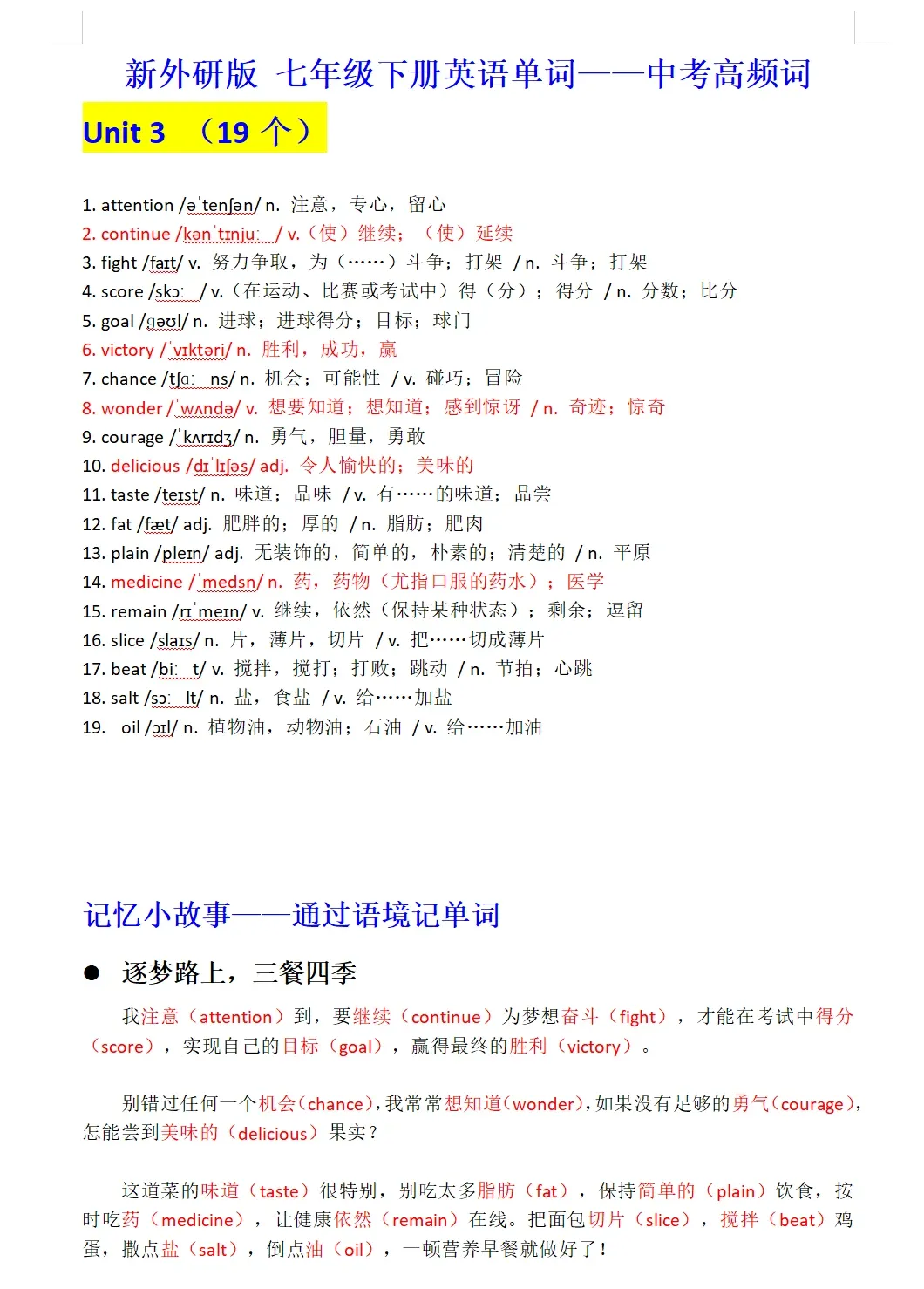 >2026春新教材外研版初中英语七年级英语下册同步教材课堂笔记+单词表知识点汇总解析