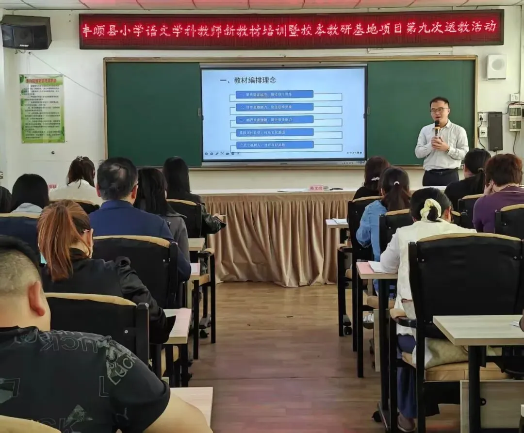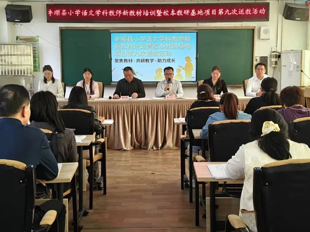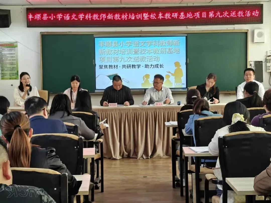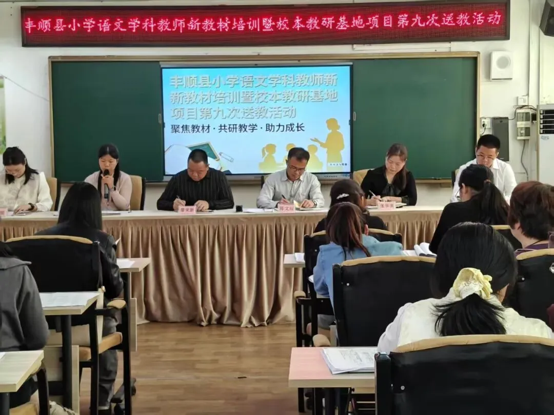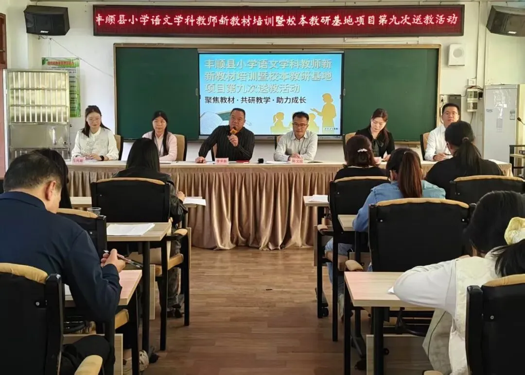 春风送暖,教研同行。为深入推进小学语文新教材使用,提升教师专业素养,促进区域教育优质均衡发展,2026年3月25日,丰顺县小学语文学科教师新教材培训暨校本教研基地项目第九次送教活动在潭江中心小学顺利举行。本次活动由丰顺县教师发展中心小学语文教研员陈文应主持,潭江中心小学支部副书记张华英,副校长廖荣新及第三、四教研区域的小学语文教研组长、部分骨干教师等50余人齐聚一堂,共研教学、共促成长。