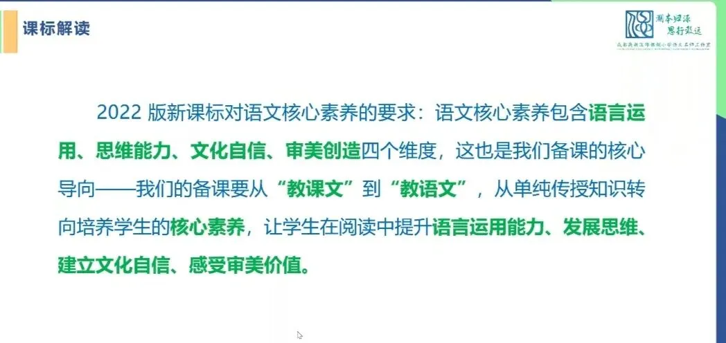 2022版新课标明确语文核心素养包含语言运用、思维能力、文化自信、审美创造四个维度,这也是本次备课的核心导向。培训强调,备课需从单纯传授知识转向培养学生核心素养,让学生在阅读中提升语言运用能力、发展思维、建立文化自信、感受审美价值。