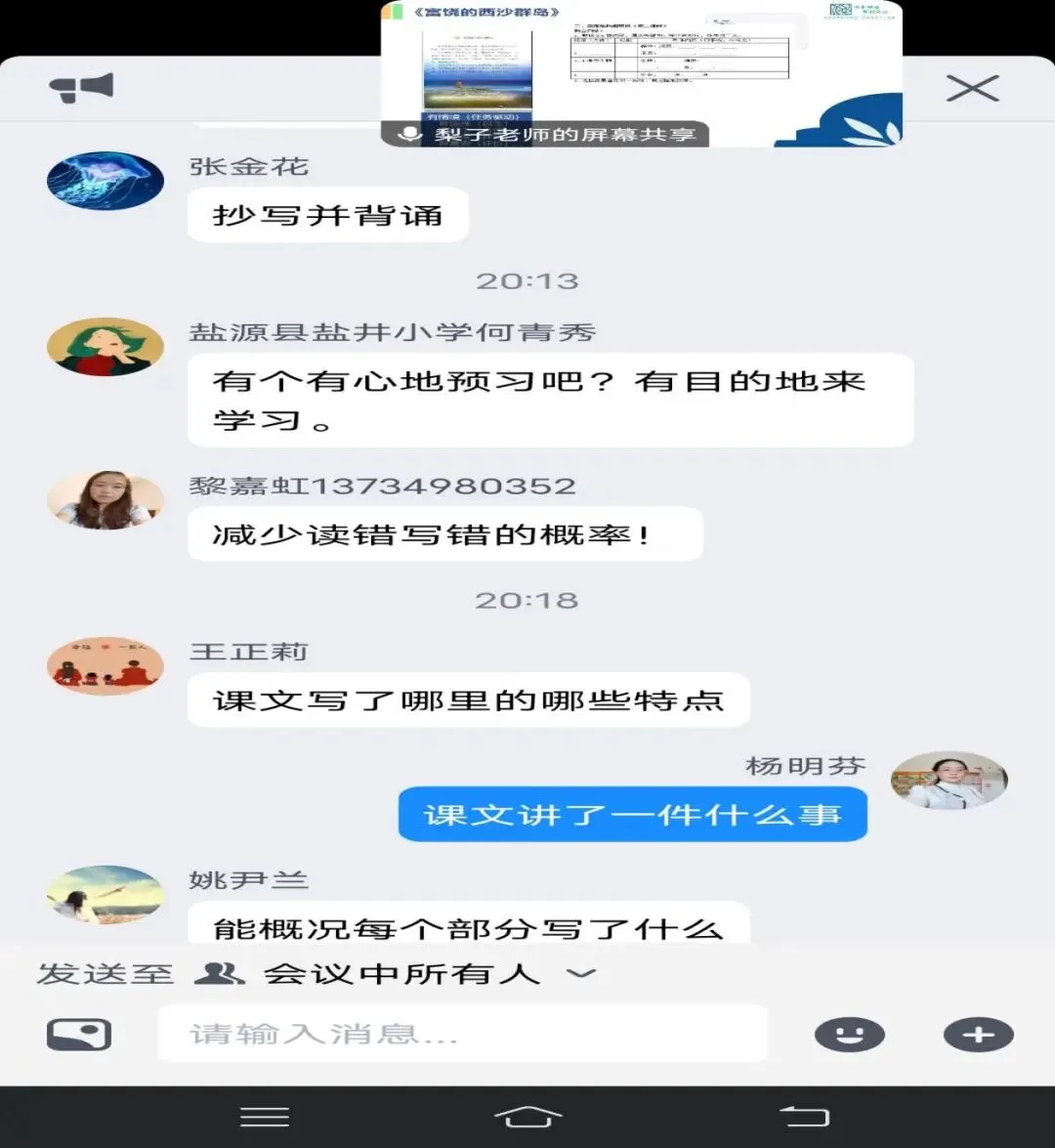本次系列研修首场活动于2026年3月25日晚19:30顺利举办,活动面向盐源县小学语文王俊乡村名师工作室、盐源县小学语文廖永翠名师工作室、凉山州范胜华小学语文名师工作室盐源站全体教师开展,以 “解读落地 备课增效” 为主题,围绕小学语文统编版教材三年级上册第 6 单元展开实操性教研分享,为后续五场研修奠定了坚实的实践基础。