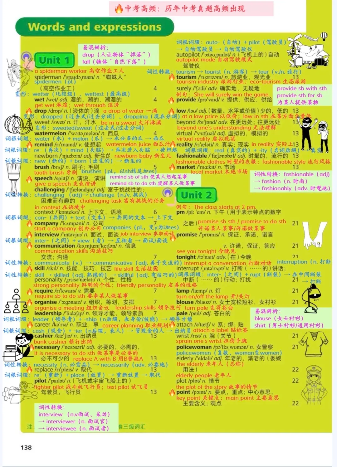 人教版教材初中八年级下册英语同步教材单词表+知识拓展详解版