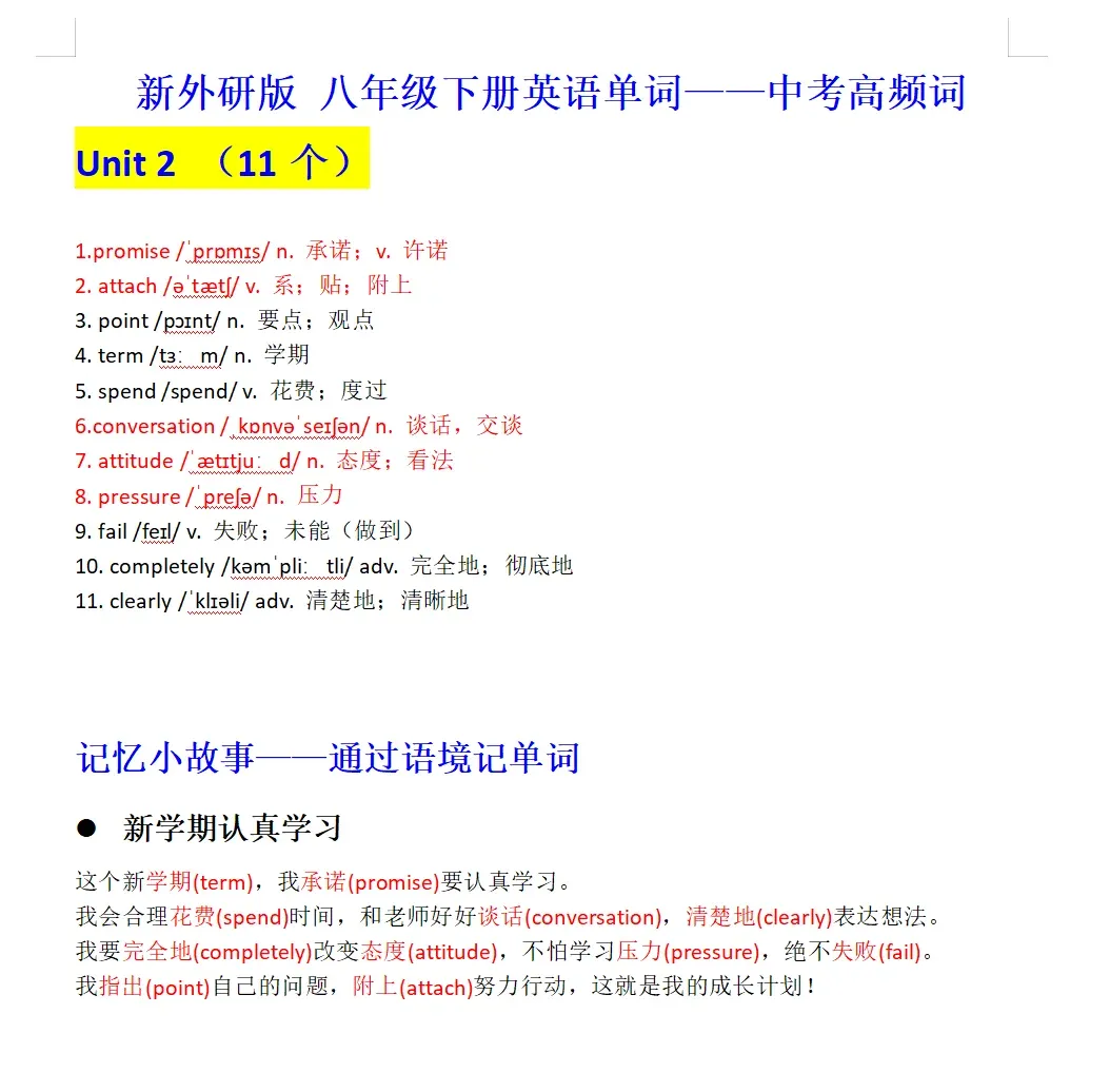(2026年新教材)外研版初中八年级下册英语电子课本同步教材单词表附知识点归纳