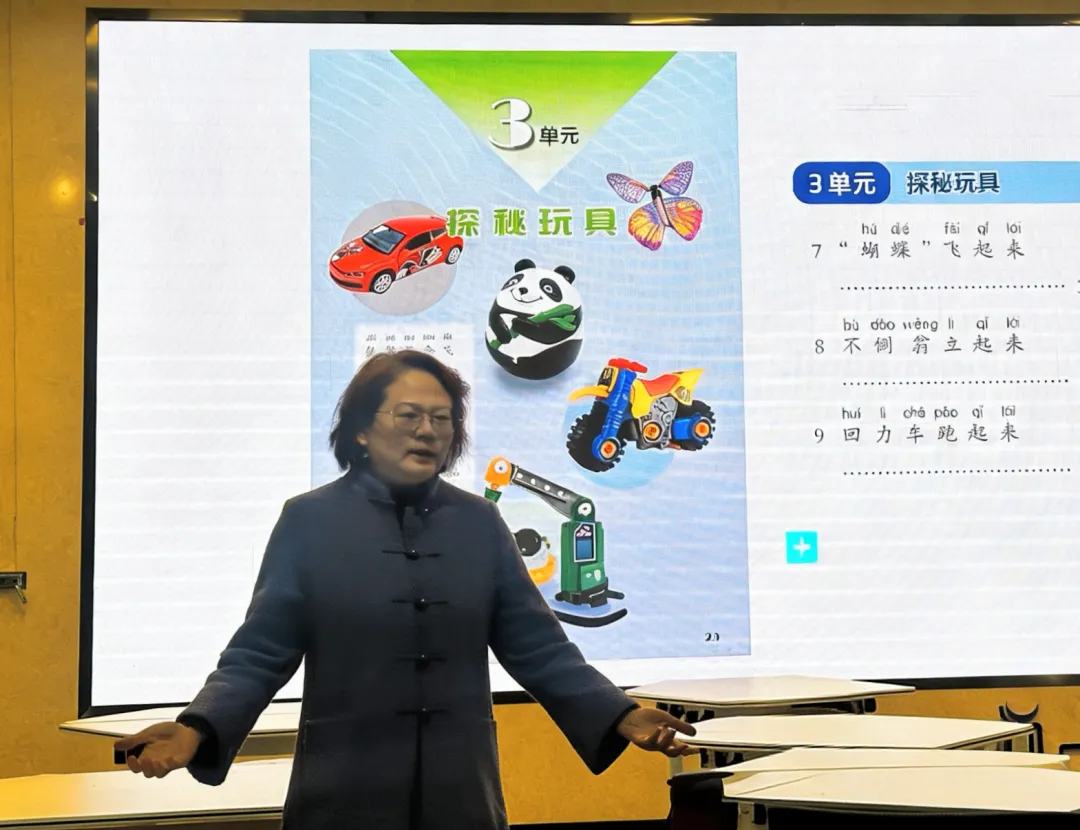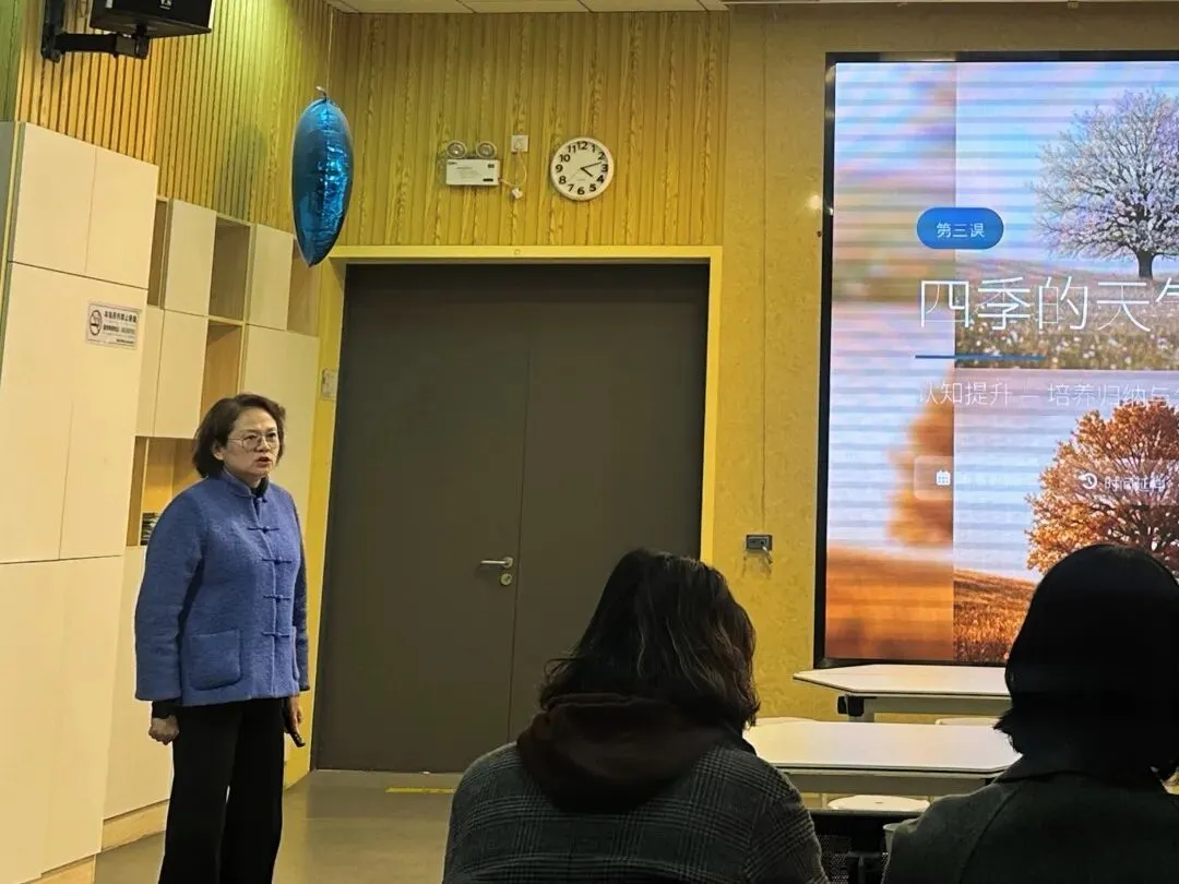 两节课后,秦淮区科学教研员夏子玫老师开展专题讲座并作精准点评。夏老师充分肯定两节课的教学亮点,指出《四季的天气》贴合儿童生活经验,以经验驱动搭建科学解释框架,引导学生完成从具象感知到规律归纳的思维进阶;《不倒翁立起来》通过结构化实验操作形成完整证据链,以实证驱动实现现象、证据与因果关系的有机结合,是优质的机制解释教学范例。