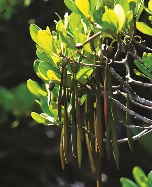 • 支柱根:从树干长出,深深扎入淤泥,像支架一样牢牢固定植株,抵御台风、海浪的侵袭,这也是它成为“海岸卫士”的基础。