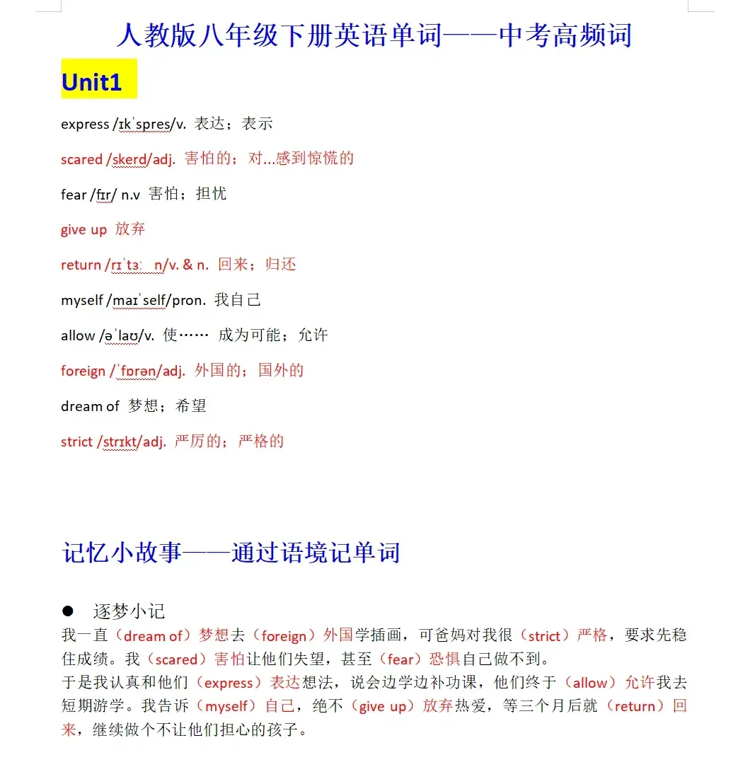 >新人教版初中八年级下册英语电子课本单词表知识拓展