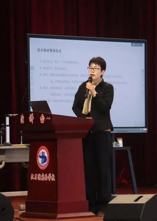 活动伊始,临沭县小学英语学科英语教研员于合美就前期深入参加各学校英语校本教研活动进行了简单的总结。于合美肯定了各学校教研活动过程,大多数学校教研活动时间固定、教研内容丰富,也指出了个别学校教研时长不足、前期准备不充分等问题。随后,教师们围绕“三段式”集体备课范式、问题链设计、情境创设等核心要点展开研讨,明确了单元主题探究、对话情境完整性、Project板块实践等教学要求,细化了教研准备与参与规范。