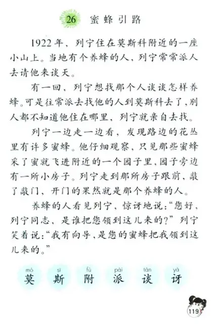 在我们的课本内容中,“蜜蜂”也是活素材,小学二年级语文课本中《蜜蜂引路》讲述了蜜蜂如何通过自己解决问题的智慧,找到养蜂人的故事。