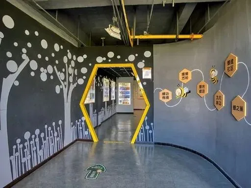 蜜蜂文化科普馆:通过展板、模型,展示蜜蜂进化史、蜂群分工、授粉与生态价值;