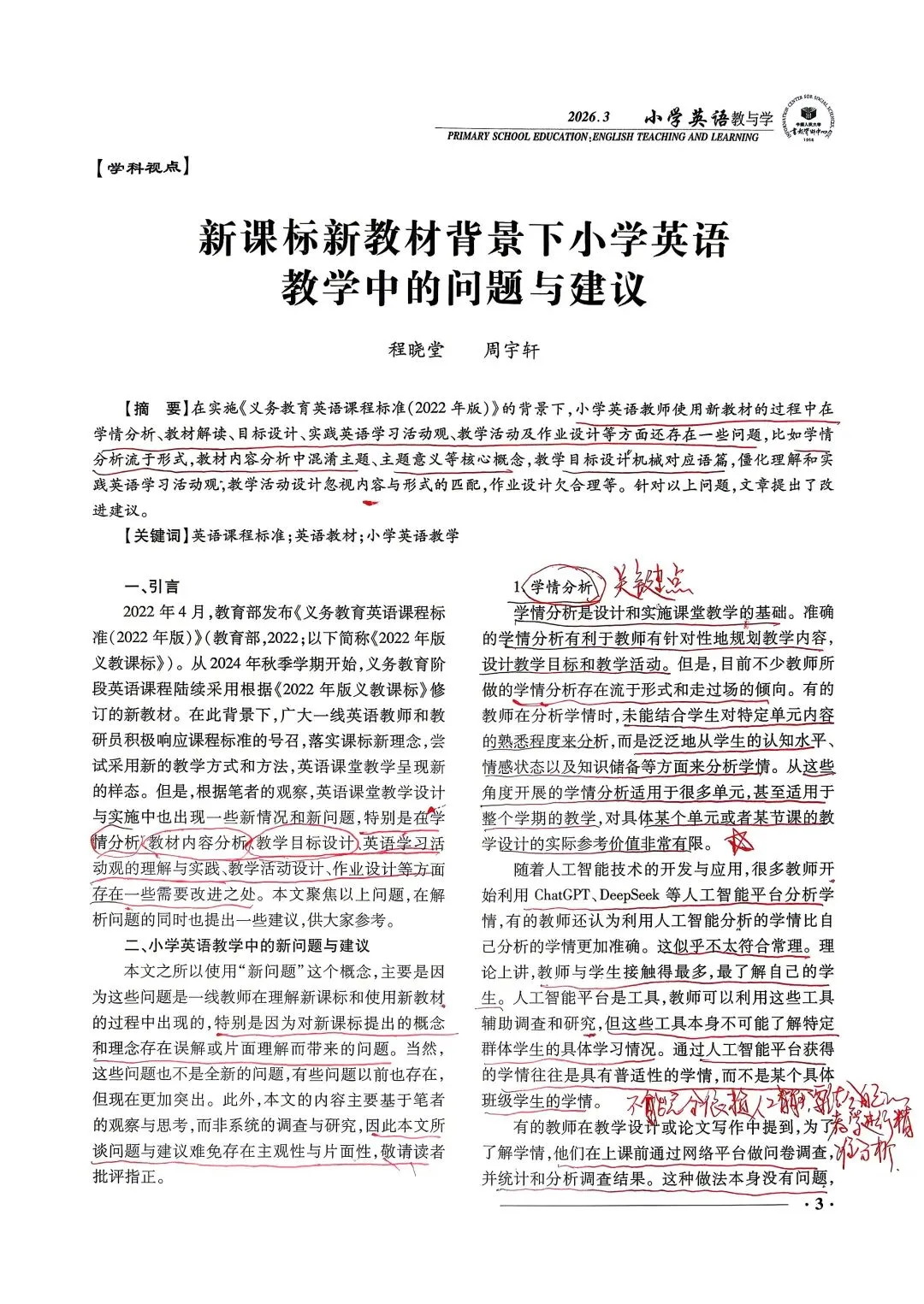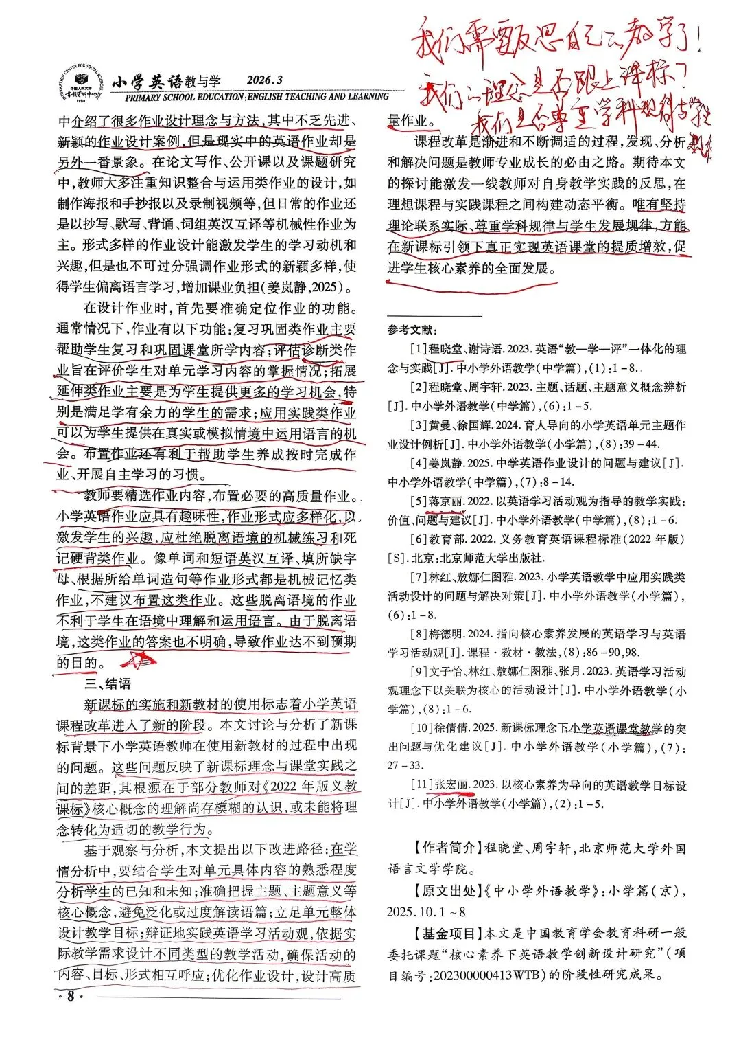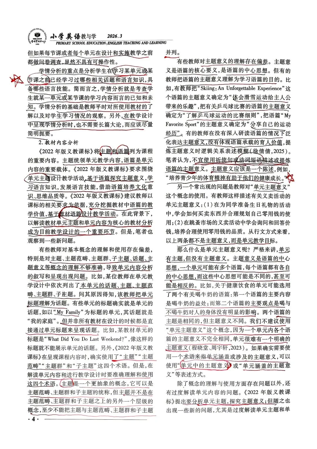 在设计外研版(2022版)四年级下册第三单元第二课时《Little Chicken》时,我以“Talents make us shine”为核心主题,将语言学习与育人目标深度融合,在课堂实践中收获了诸多感悟。本课围绕小鸡探索自身才能的故事展开,核心句型为“I'm good at…”“I’m not good at…”,旨在引导学生理解“人各有所长”的道理。起初我曾陷入“重词汇句型操练、轻情感体验”的误区,机械带领学生跟读单词、背诵句型,学生虽能完成书面练习,却无法在真实情境中自如表达,课堂氛围沉闷。意识到问题后,我紧扣英语学习活动观,重构了“学习理解—应用实践—迁移创新”的活动链条。 在学习理解环节,我将通过动画观看、图文匹配等活动,引导学生梳理故事脉络,提取小鸡与其他动物的才能信息,让学生在语境中感知核心句型的含义;应用实践环节,设计分角色表演任务,让学生代入小鸡、鸡爸爸等角色,体会小鸡从羡慕、沮丧到自信的情绪变化,在对话中内化语言;迁移创新环节,布置“Talk and write about your talents”任务,引导学生联系自身实际,用英语介绍自己的特长,引导学生从故事到生活的迁移。 小学英语教学不能只停留在语言知识的灌输,更要挖掘语篇的育人价值。《Little Chicken》的故事不仅是语言载体,更是引导学生接纳自我、欣赏他人的鲜活素材。同时,我也发现部分基础薄弱学生在拓展表达中存在困难,后续需设计差异化任务,让不同层次学生都能获得成长。 总之,本课让我明白,优质的英语课堂应是“语言学习+情感育人”的统一体,唯有立足学情、贴近生活,才能让学生在“学用结合”中真正提升核心素养。