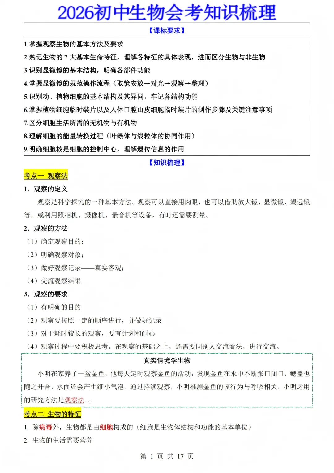 >【新版本】新教材 2026 初中生物会考复习知识梳理汇总,电子版可打印!