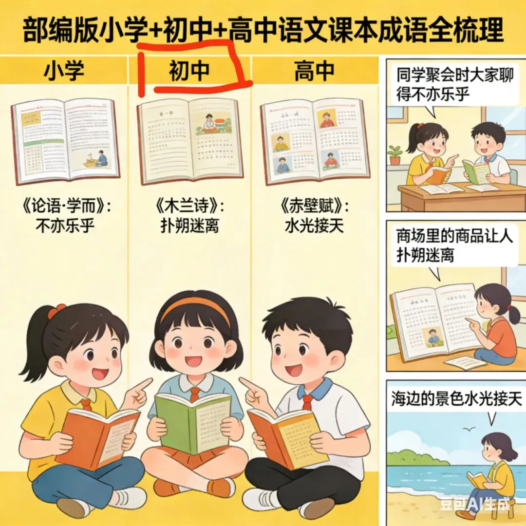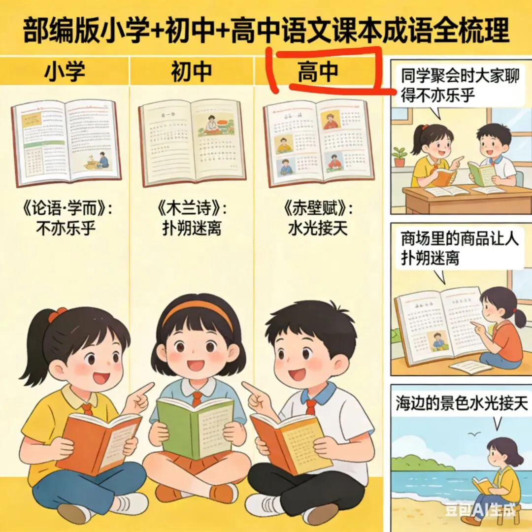 部编版小学+初中+高中语文课本成语全梳理(标注课文出处)