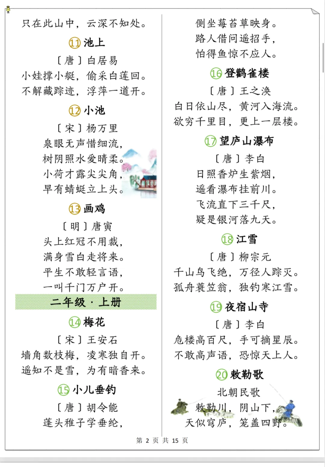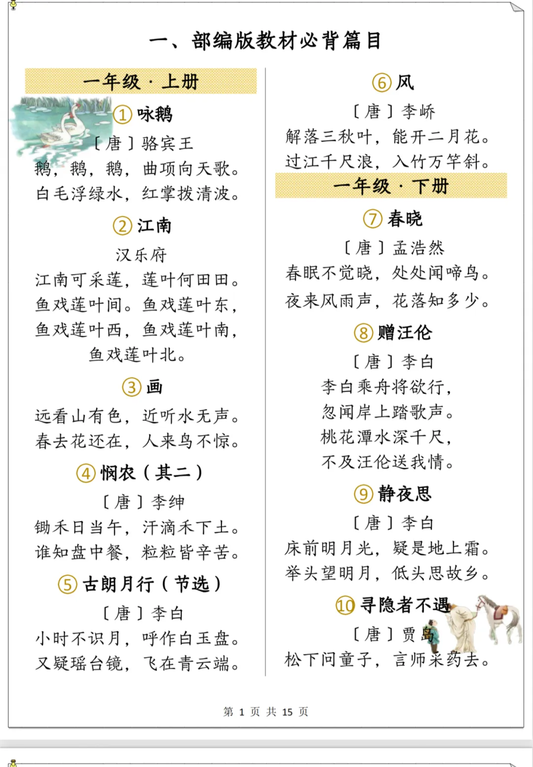 今天特意为大家整理了小学1-6年级必背古诗全集,
