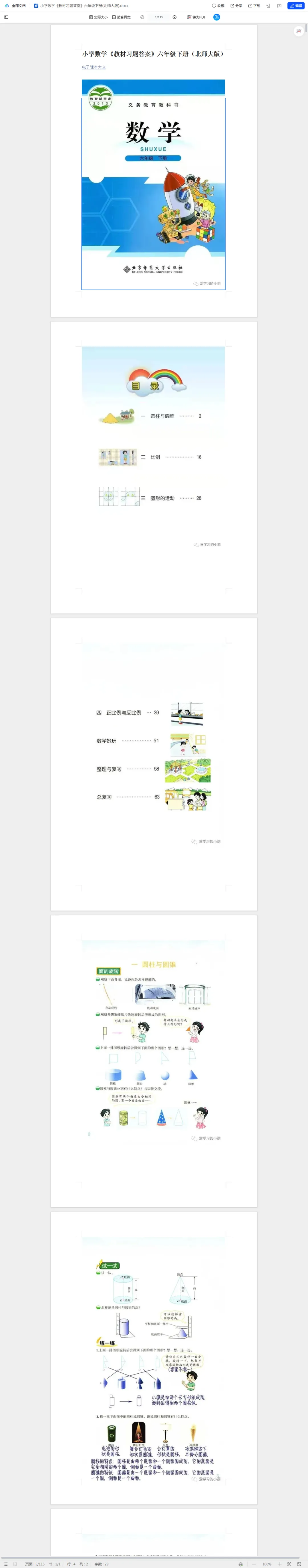 >小学教材习题答案六年级下册6年级下册北师大版数学课本参考答案北师大版