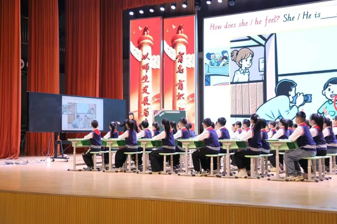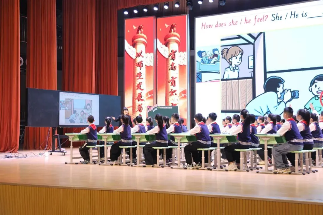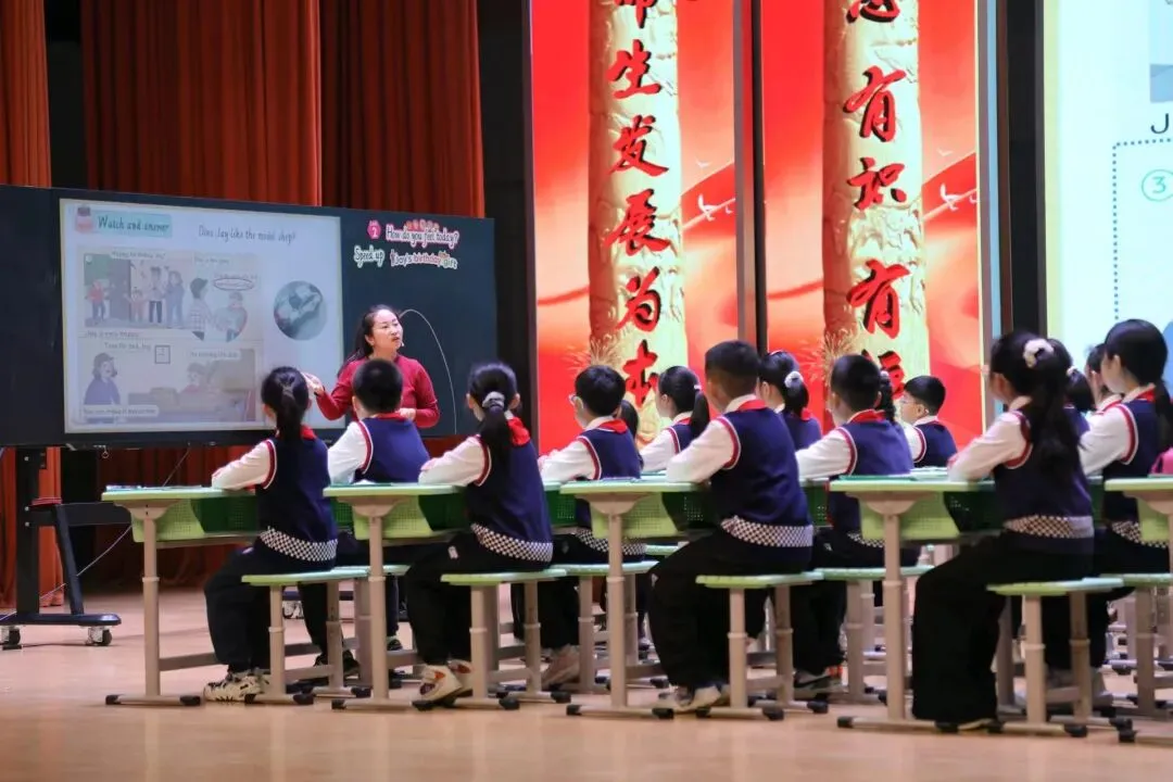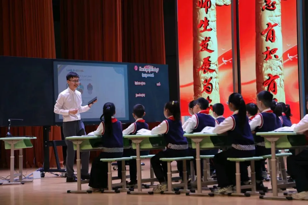 上午,首先由聊城市第一实验学校教育集团许士敏、刘欣、顾泰良三位骨干教师,围绕新标准英语四年级下册Unit 2《How do you feel today?》开展单元专题课例展示,以问题链为纽带,层层递进挖掘单元主题意义。授课教师将新课标理念深度融入课堂教学,灵活运用AI视频拓展课程资源、丰富学习体验,并借助平板互动教学,有效实现教—学—评一体化。
